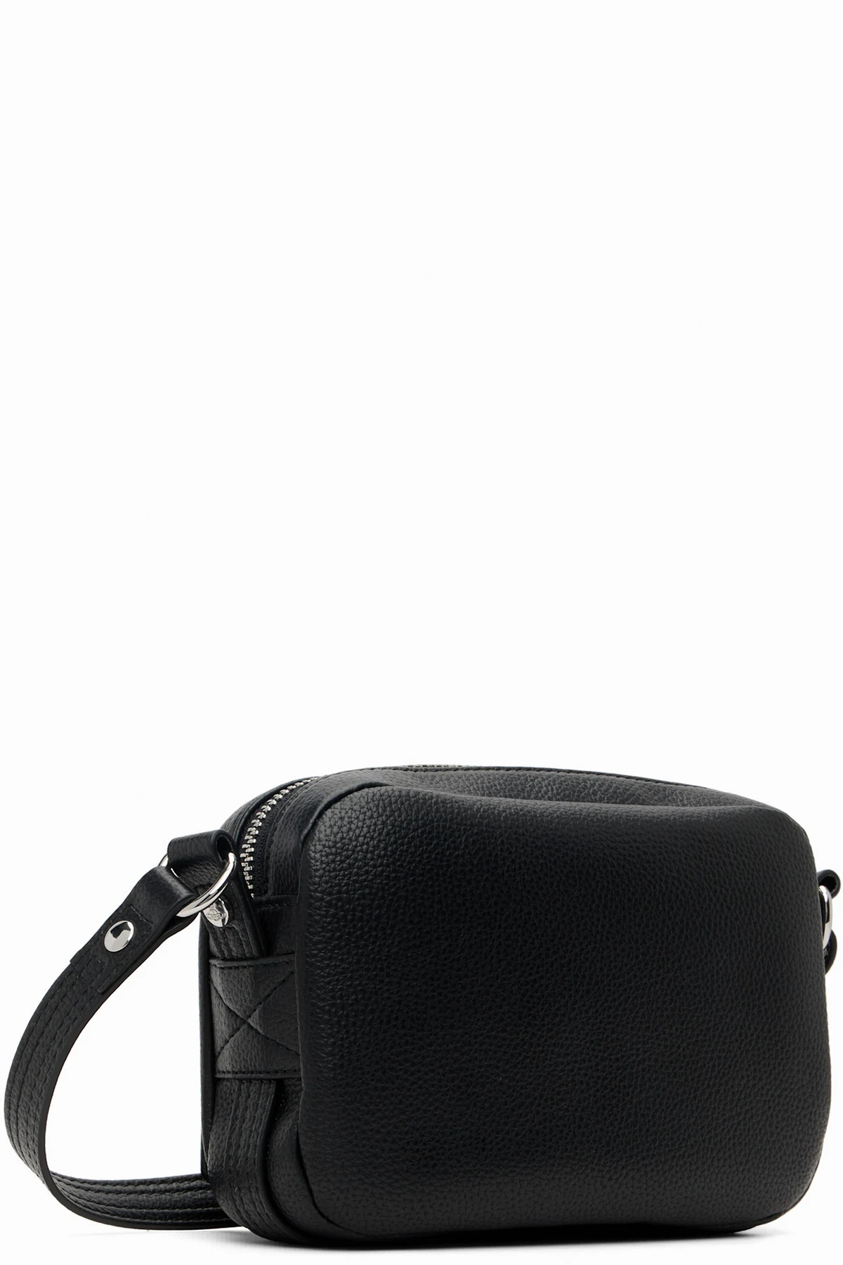 Grained faux-leather messenger bag.