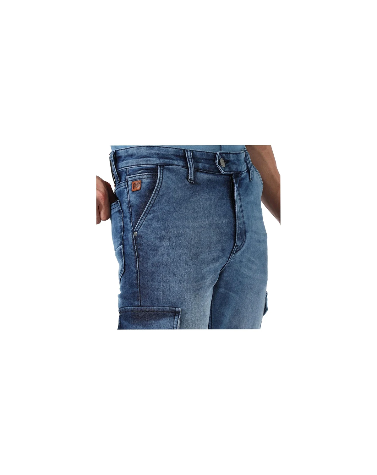 Campus Sutra Men's Medium-Wash Cargo Denim Jeans