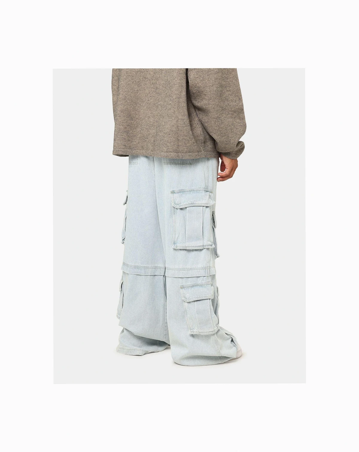 Standout from the rest with the Rave Multi Cargo Denim Pants by mnml. These are designed with a new oversized rave fit, constructed from a vintage washed denim, integrated belt at the waist from tonal fabric, and finished with exaggerated cargo pockets throughout.
