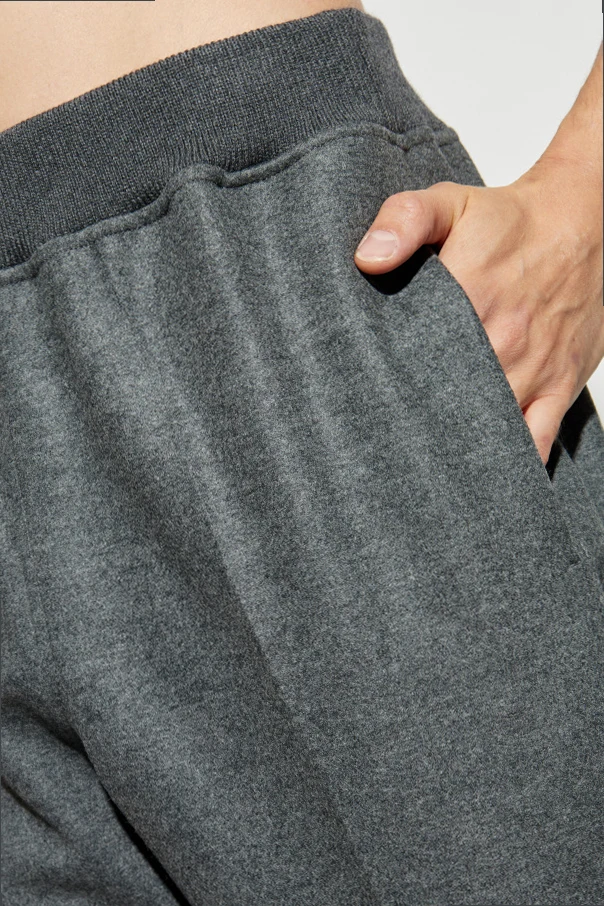 The luxuriously soft, plush wool fabric creates a distinct tactile impression, enveloping you in exceptional warmth and comfort. Unembellished with logos or patterns, the trousers present a smooth, uniform gray hue, radiating contemporary grace. Discreet side slit pockets offer practical convenience, while the meticulous finish remains faithful to the brand's androgynous, clean-lined legacy.
