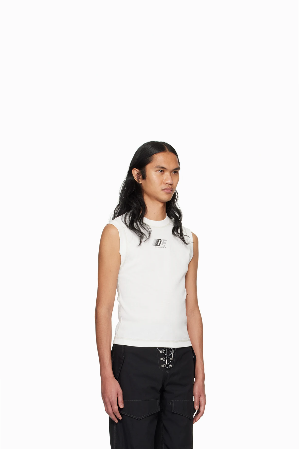Organic cotton ribbed jersey tank top. Overlock stitching throughout.