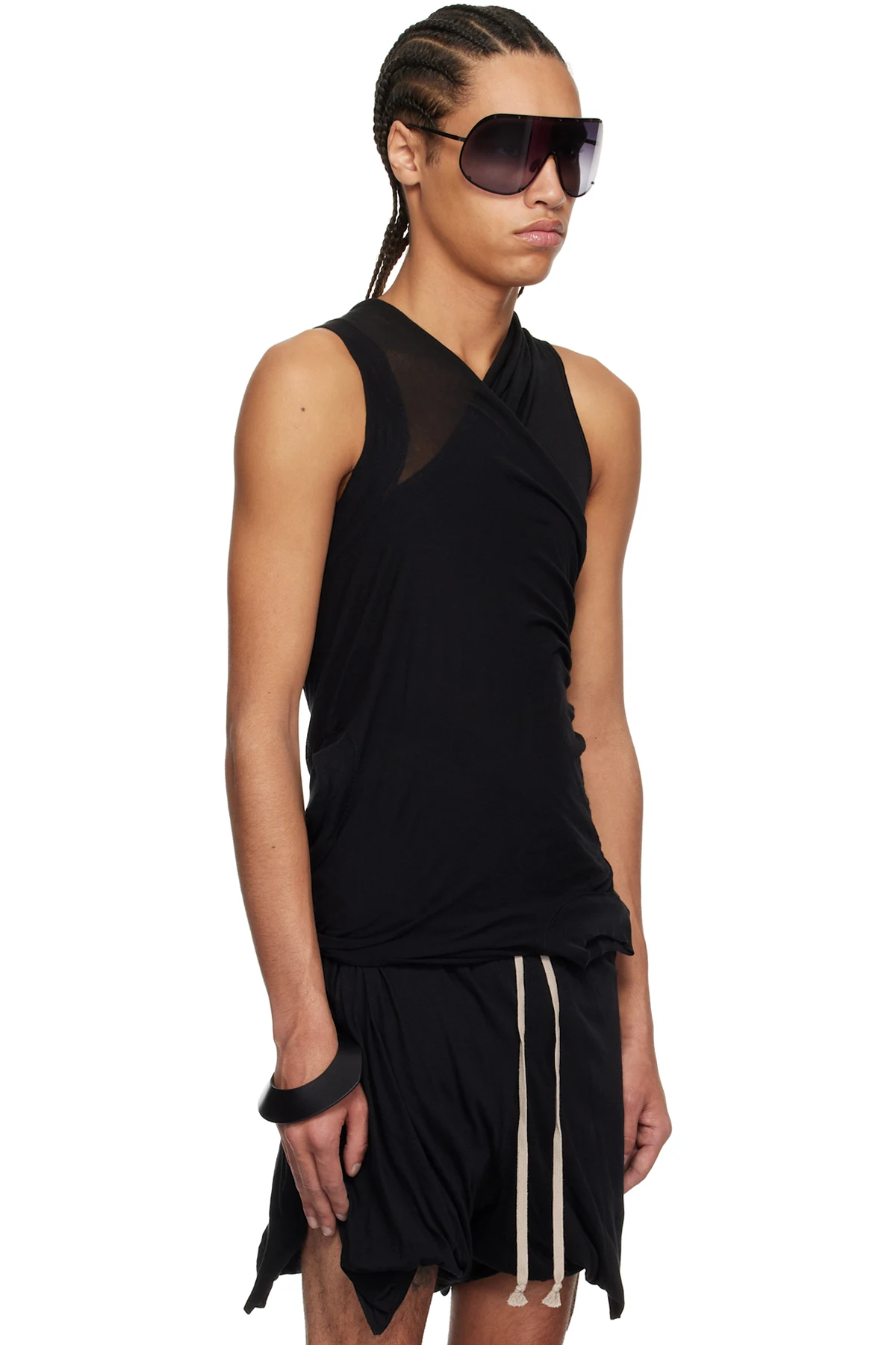 GOTS-certified organic cotton jersey tank top. Draping and raw edges throughout.