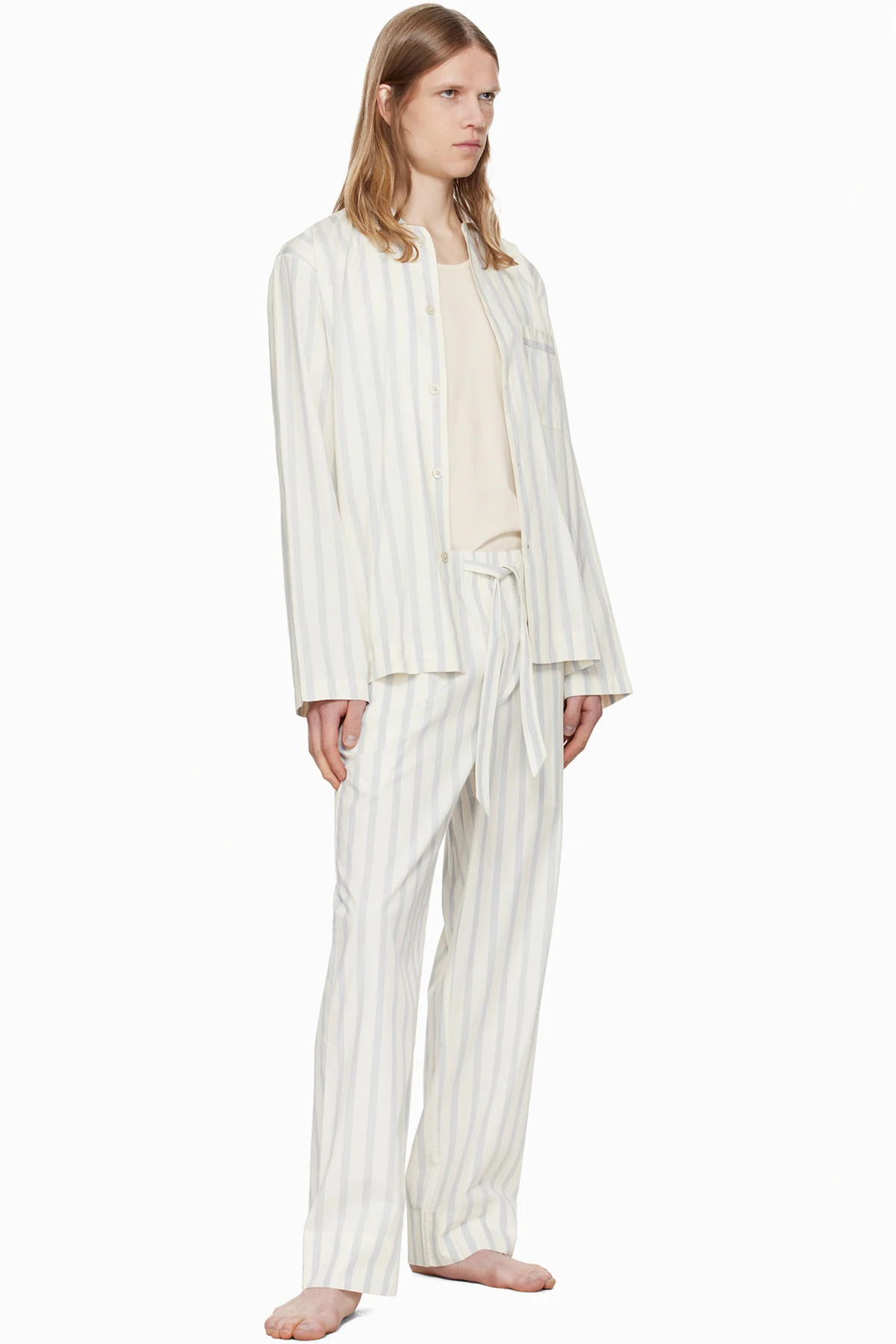 TEKLA Off-White & Navy Poplin Pyjama Pants