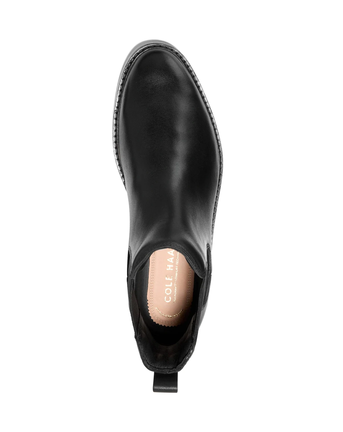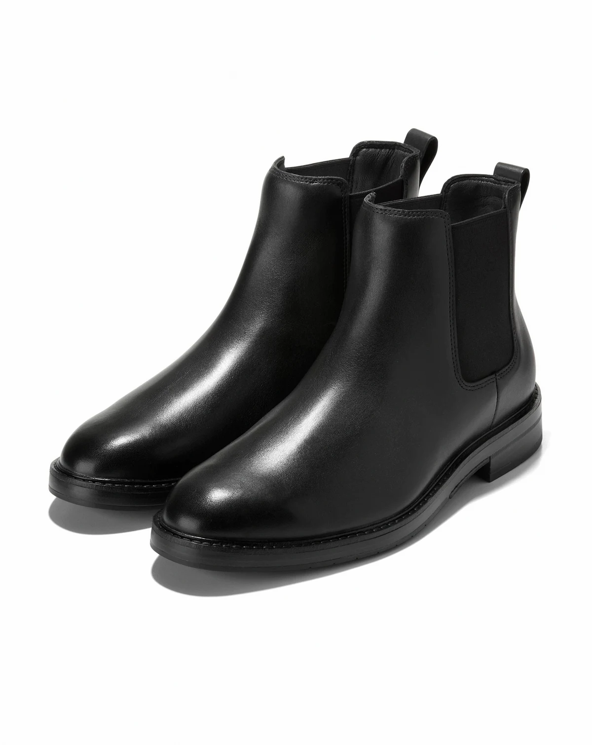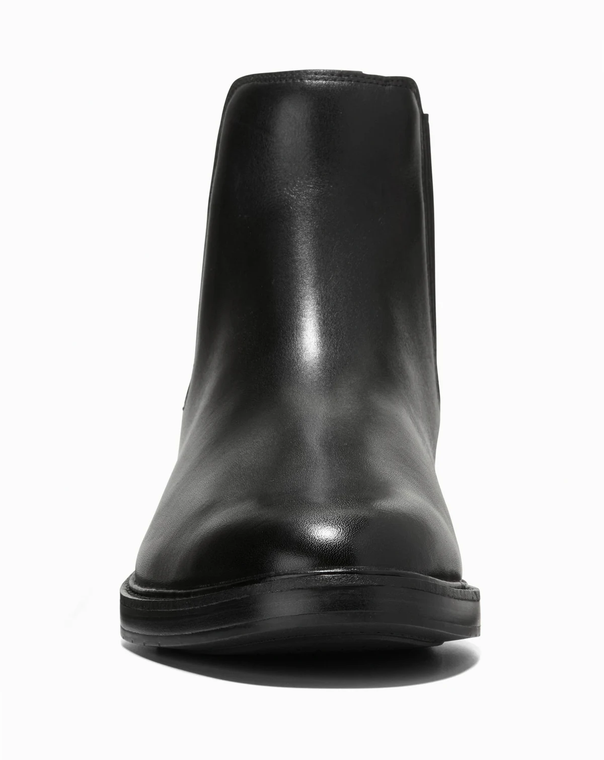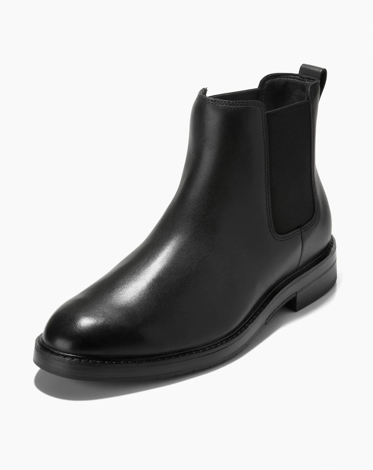 Experience modern comfort with these Cole Haan Chelsea boots featuring water-resistant construction. Elastic side gores ensure easy slip-on entry while maintaining secure fit. FlexCraft cushioning and FlowerFoam midsole provide responsive support for all-day wear. The round toe design offers timeless appeal that works with various outfits.