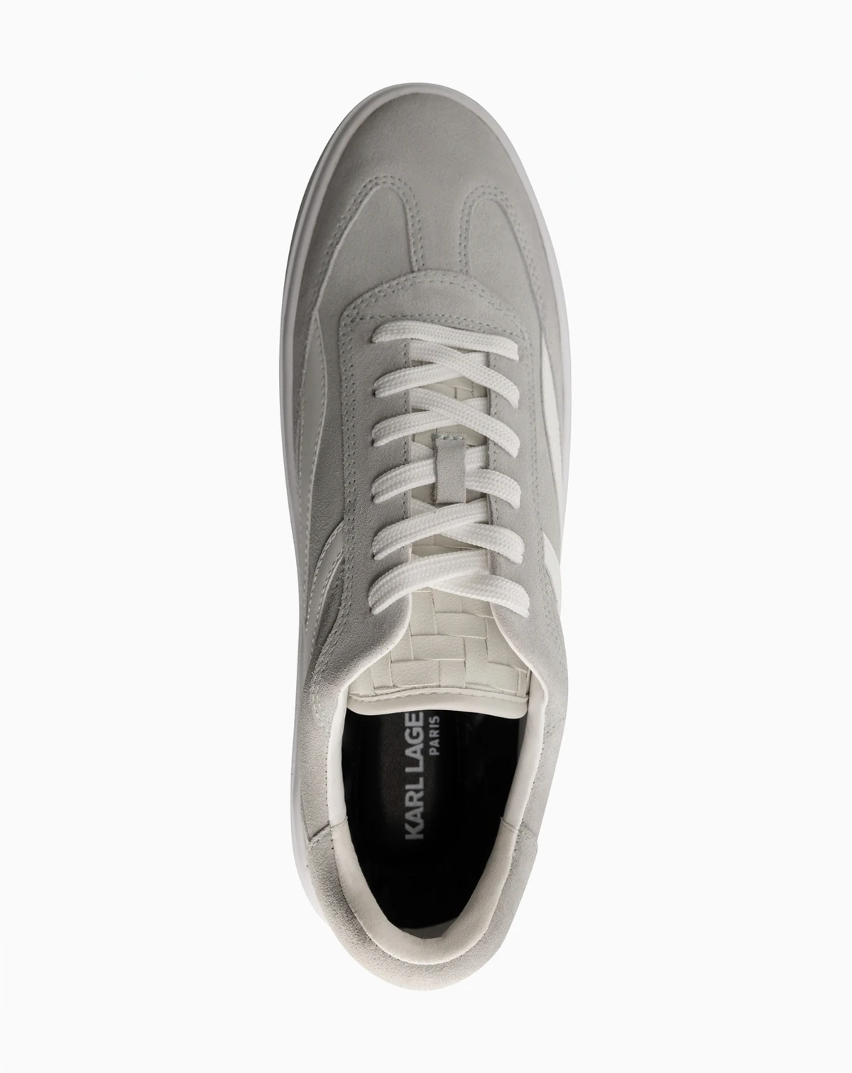 A suede leather racer toe sneaker with a K logo on the side from KARL LAGERFELD PARIS.