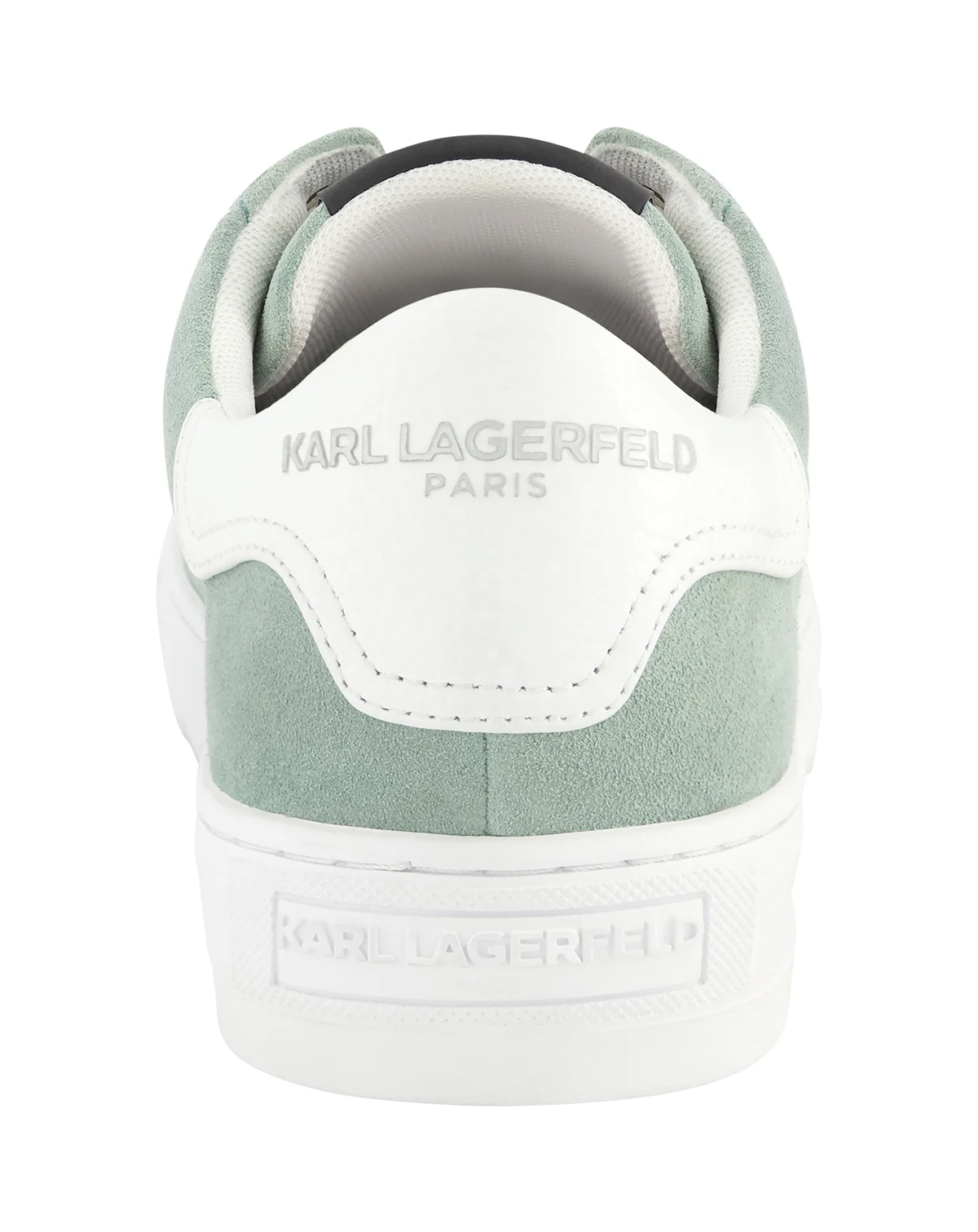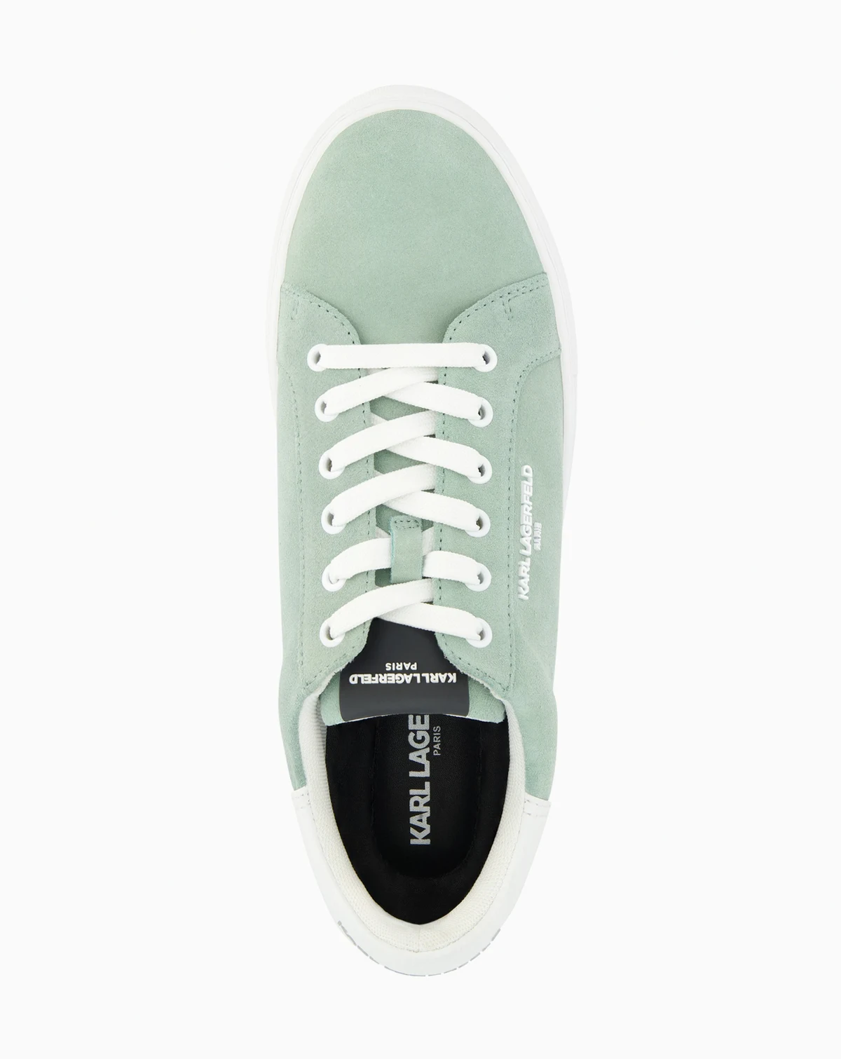 A suede leather fashion bit sneaker with a side logo on a sawtooth sole from KARL LAGERFELD PARIS.