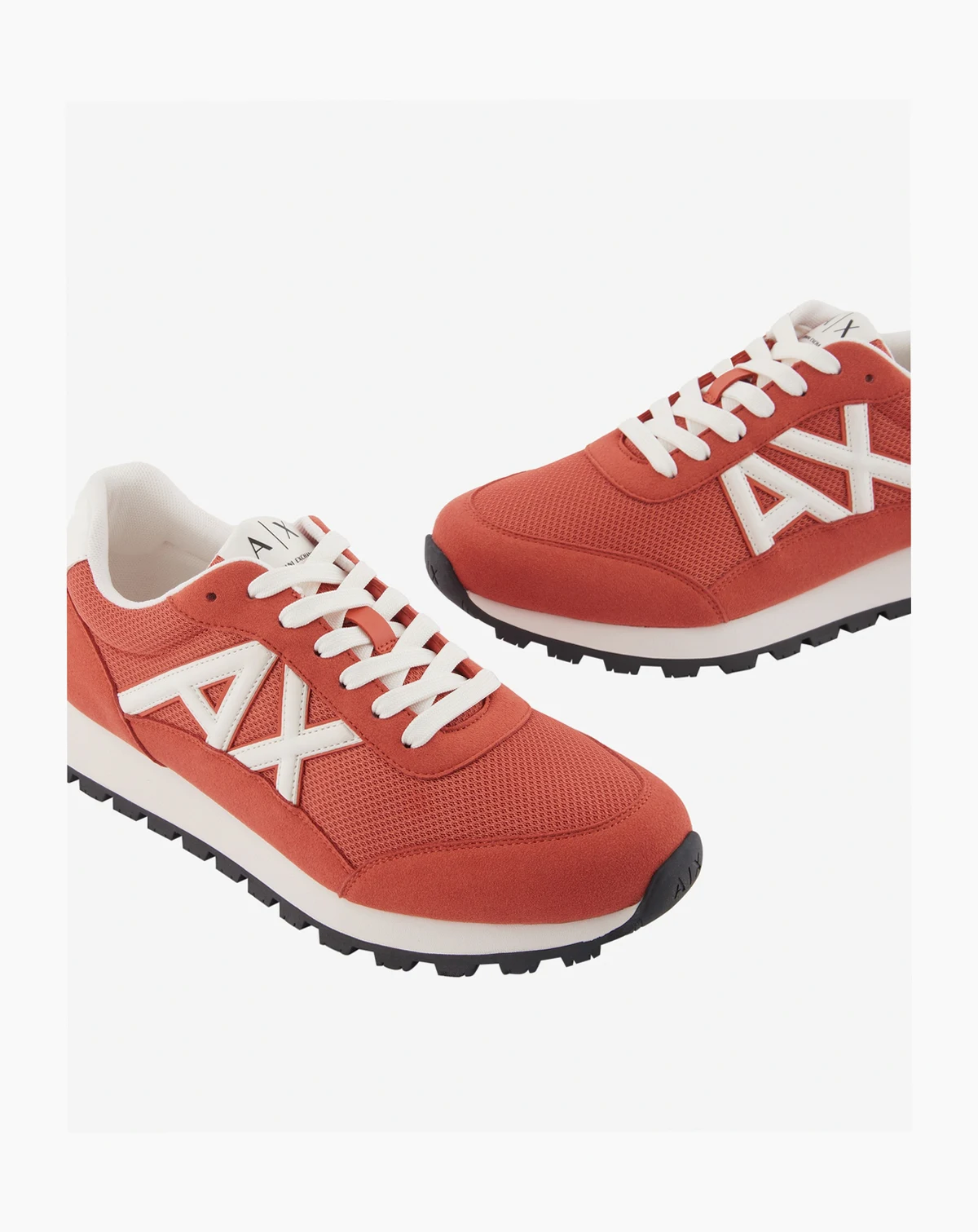 Modern design meets everyday ease in these A|X Armani Exchange drop sneakers, featuring a sleek, athletic-inspired silhouette with a lace-up closure. The round toe offers comfortable wear for long hours, and the subtle logo accents add a polished, versatile touch.