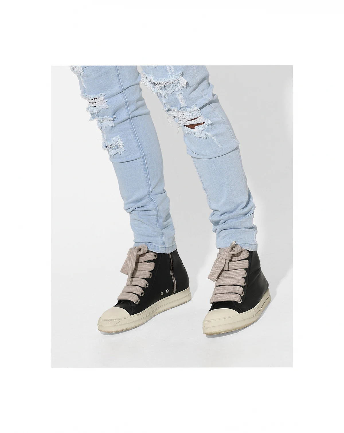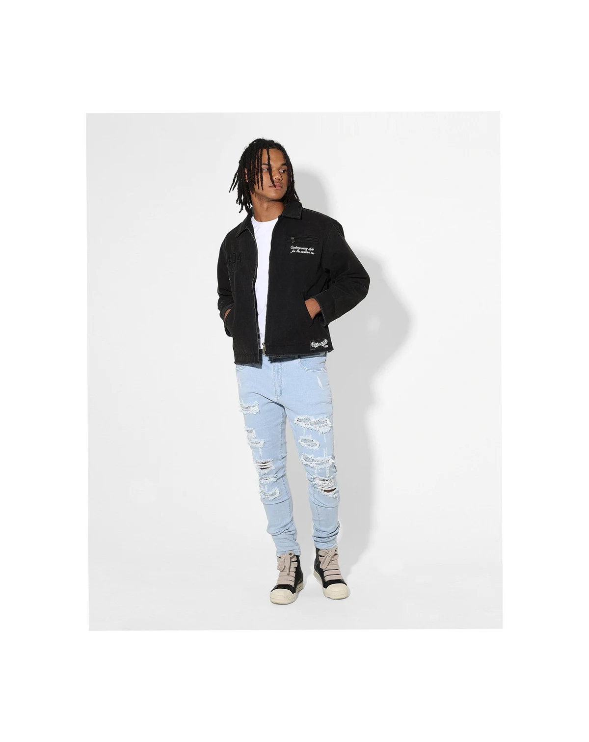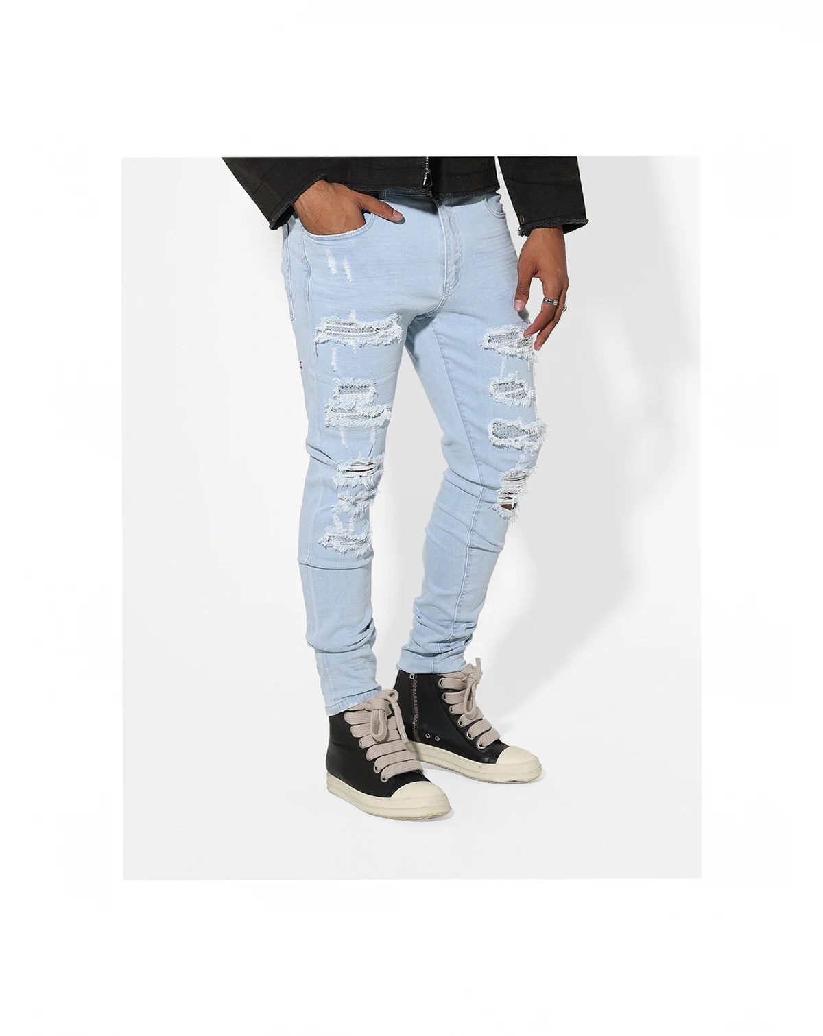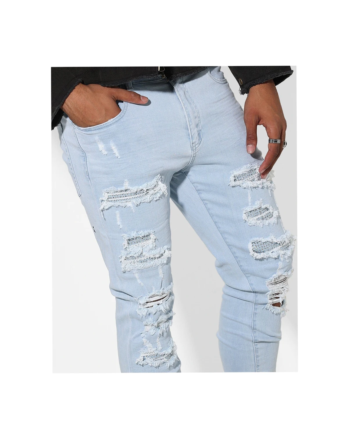Throw on this jeans and you will be ready to up your streetwear game. These jeans are a must have with the heavy distressing through the front of both legs which exposes the unique diamond detailing.