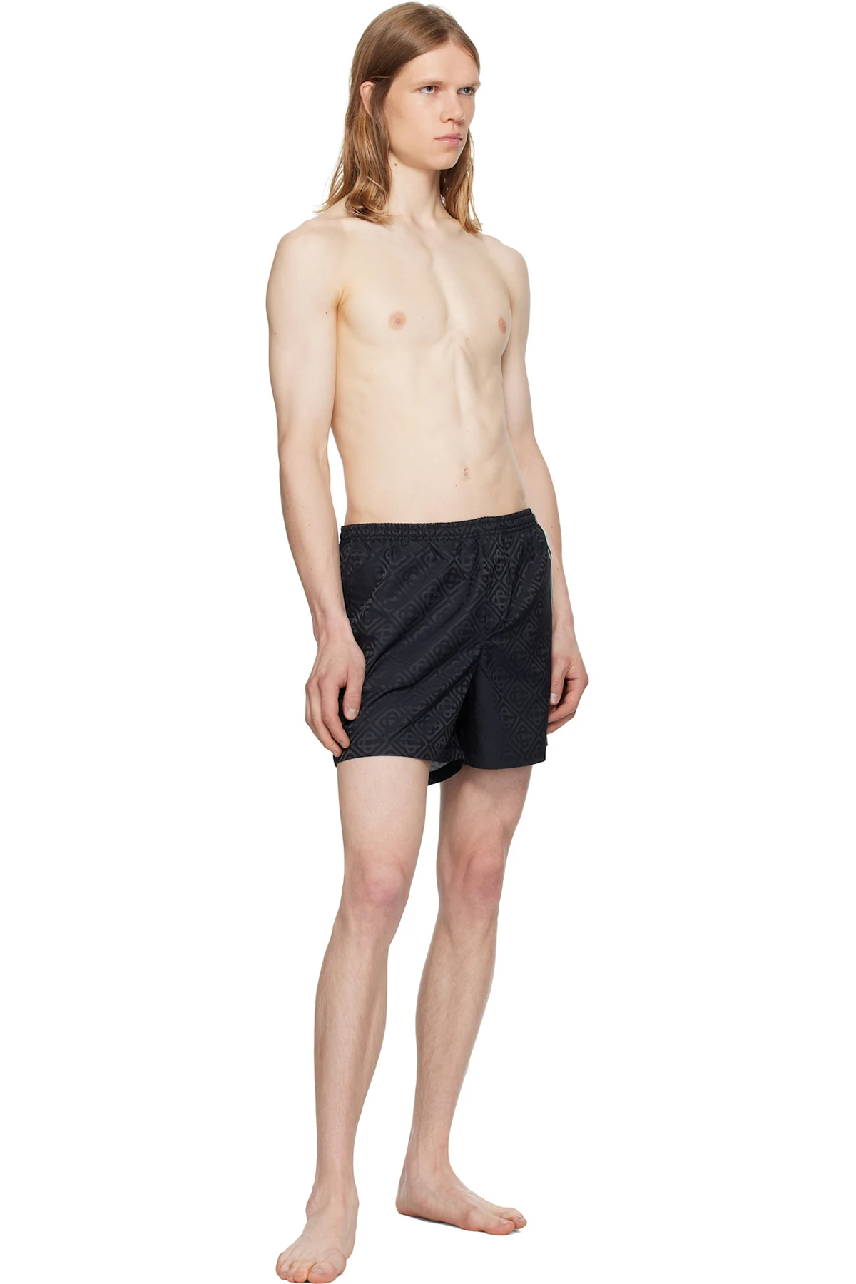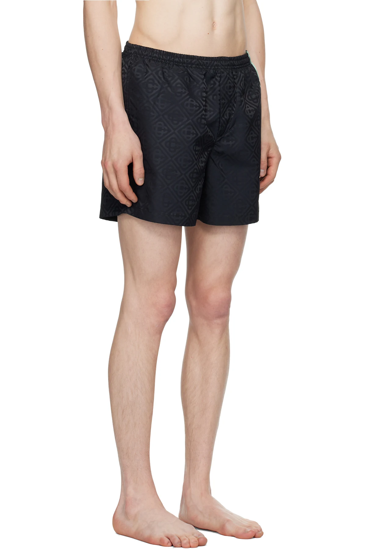 Casablanca Black Monogram Jacquard Stripe Swim Shorts