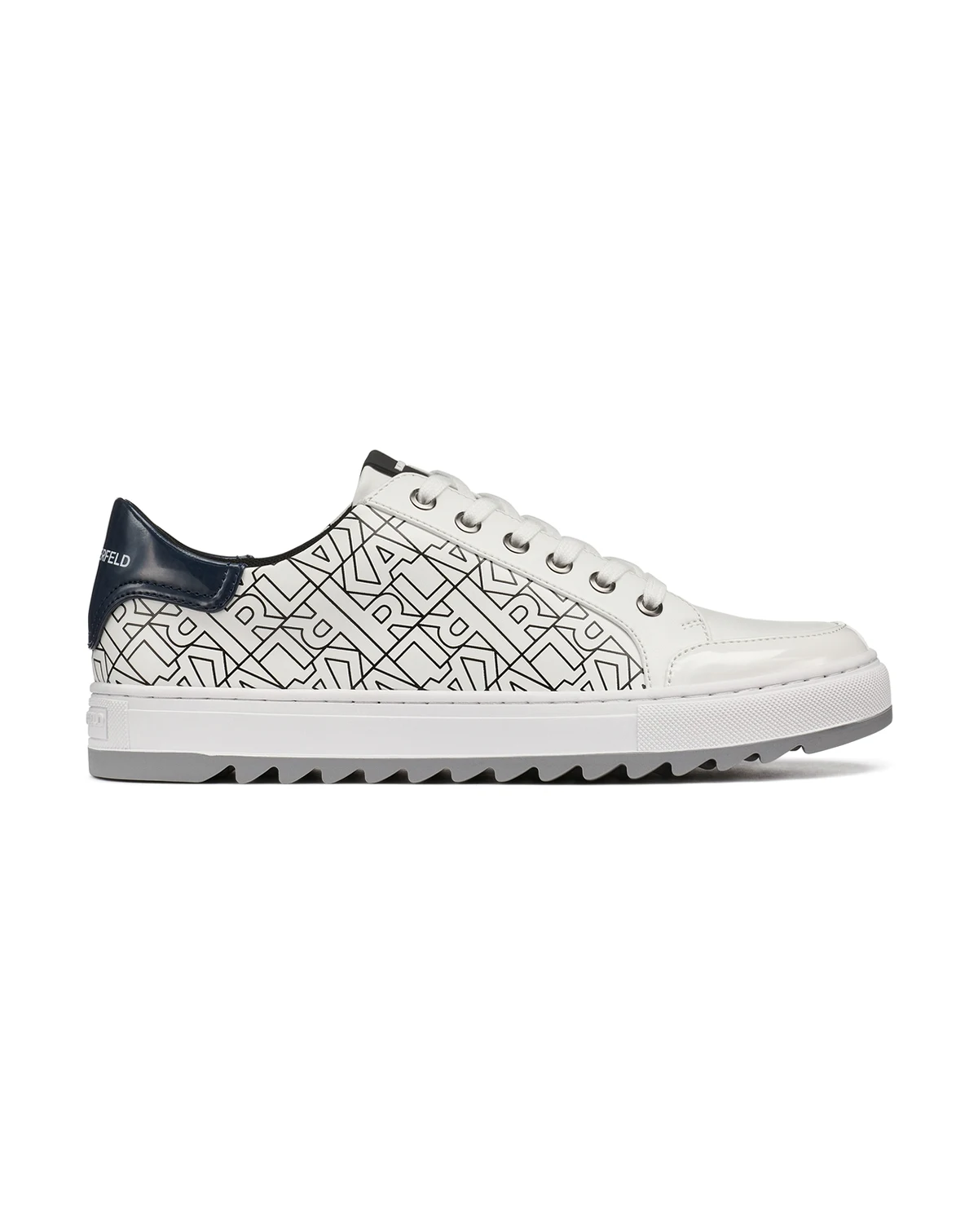 Showcasing patent detailing and side logo print, these sneakers by KARL LAGERFELD PARIS present a sleek and glossy appearance. The construction offers a polished and modern look.