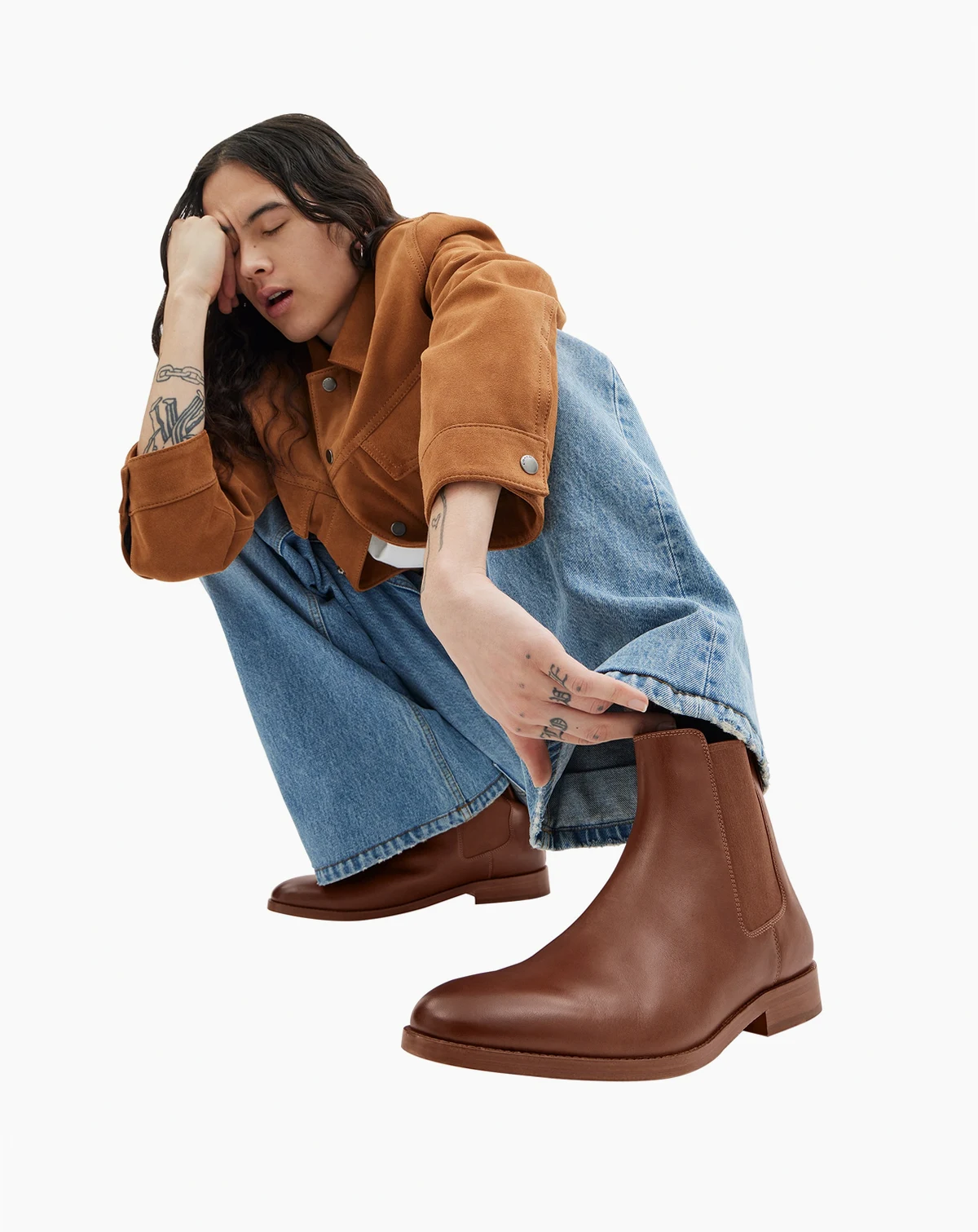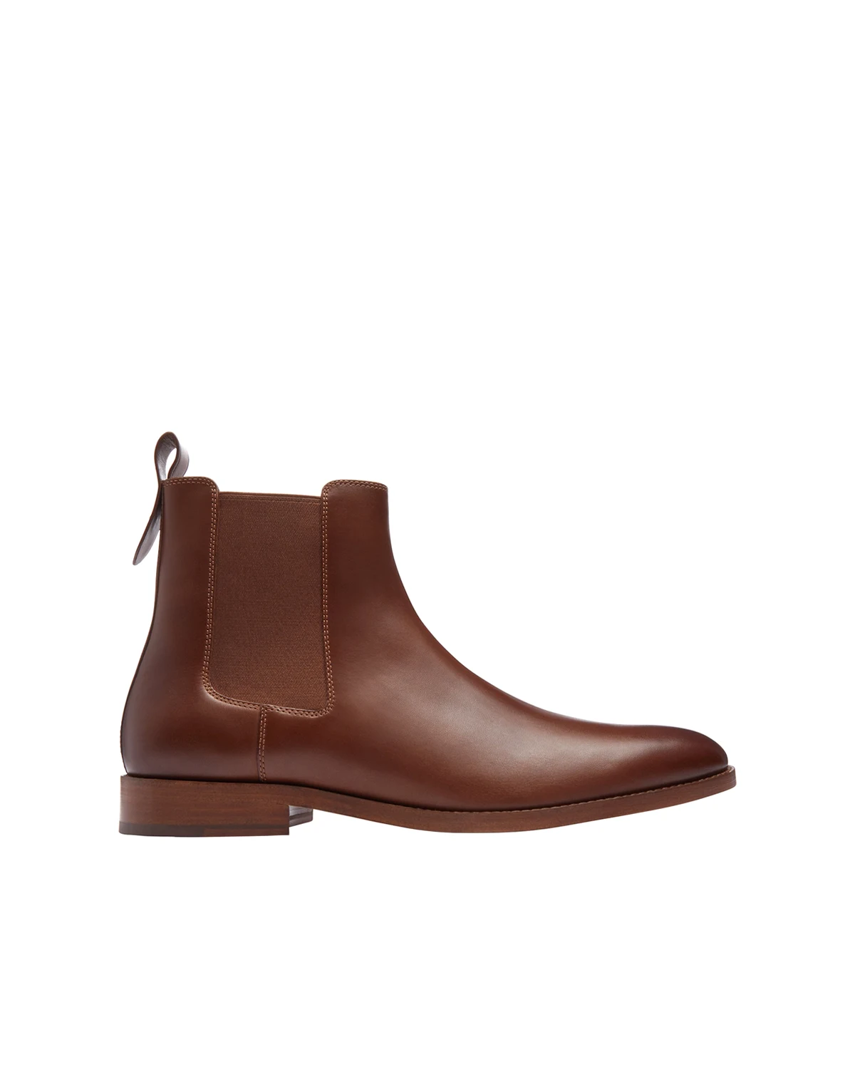 An effortless, forever-cool style, our Dalton Chelsea Boot is a versatile choice for workdays and weekends. Crafted of smooth leather with ribbed ankle gores, the streamlined design features a comfortable rubber sole and a pull tab detailed with our polished Signature for on-and-off ease.