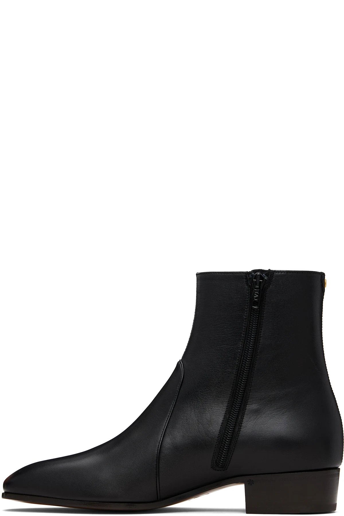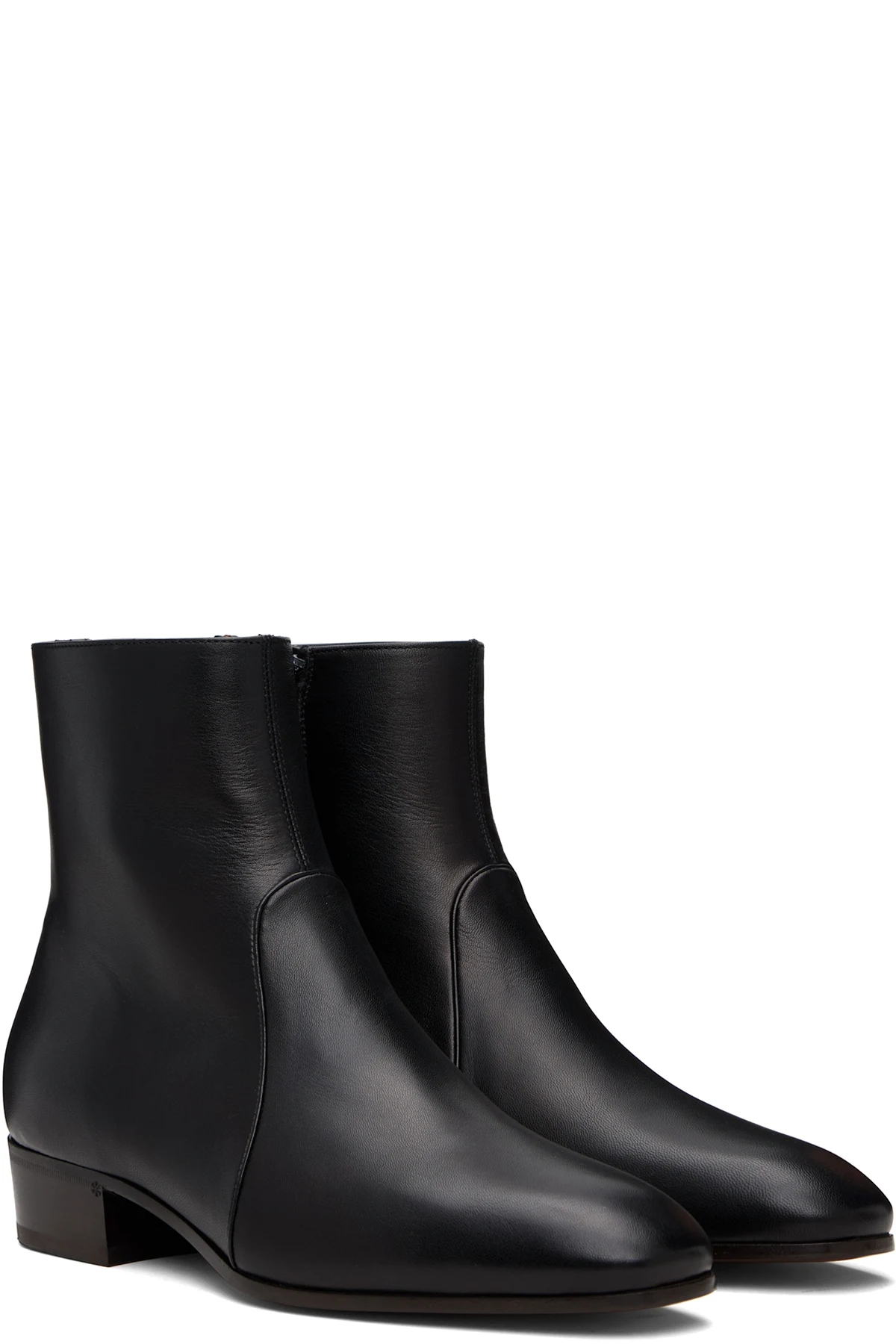 Ankle-high polished kidskin boots.