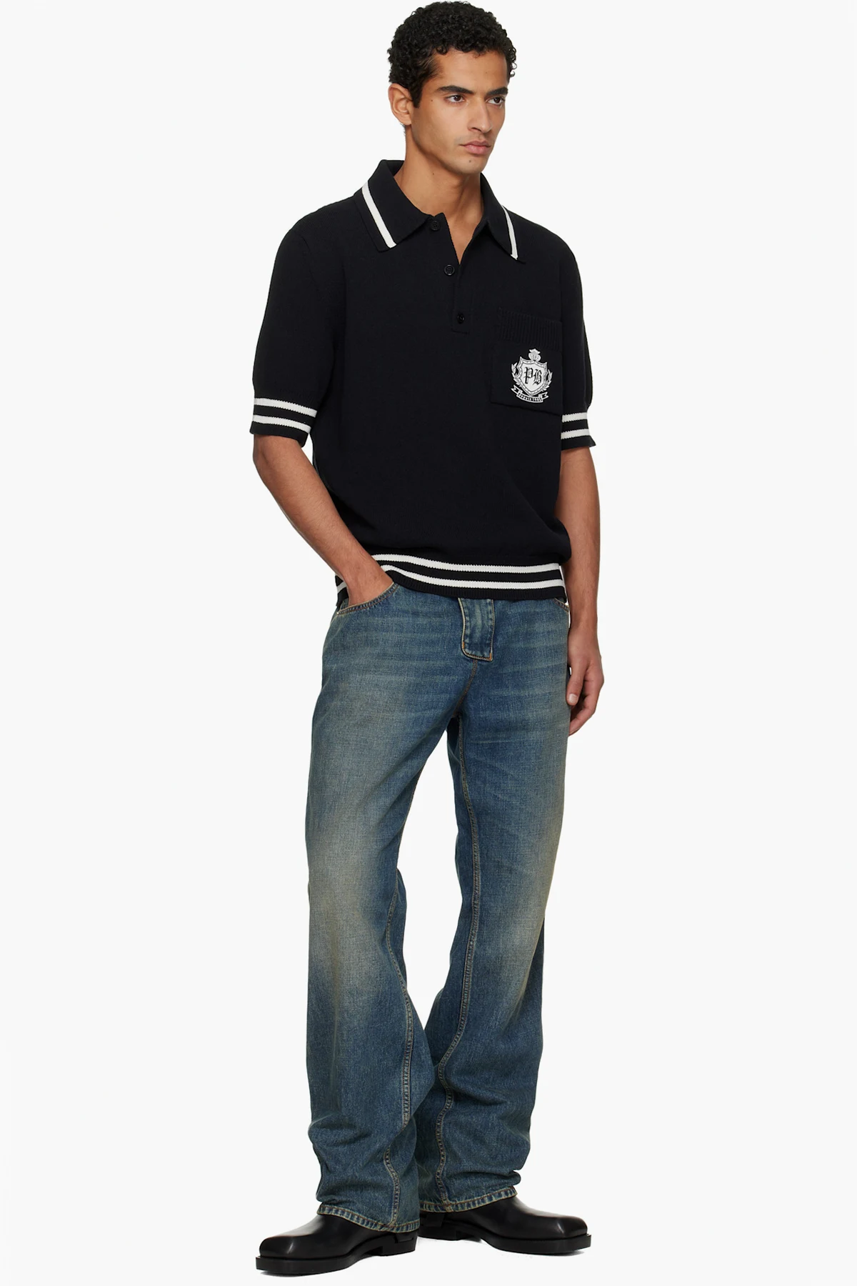 Upper: calfskin. Sole: calfskin, rubber.