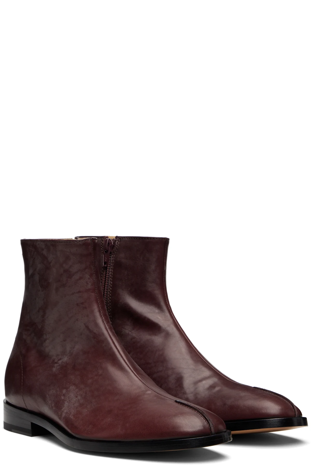 MM6 Maison Margiela Burgundy New Classic Stitch Ankle Boots