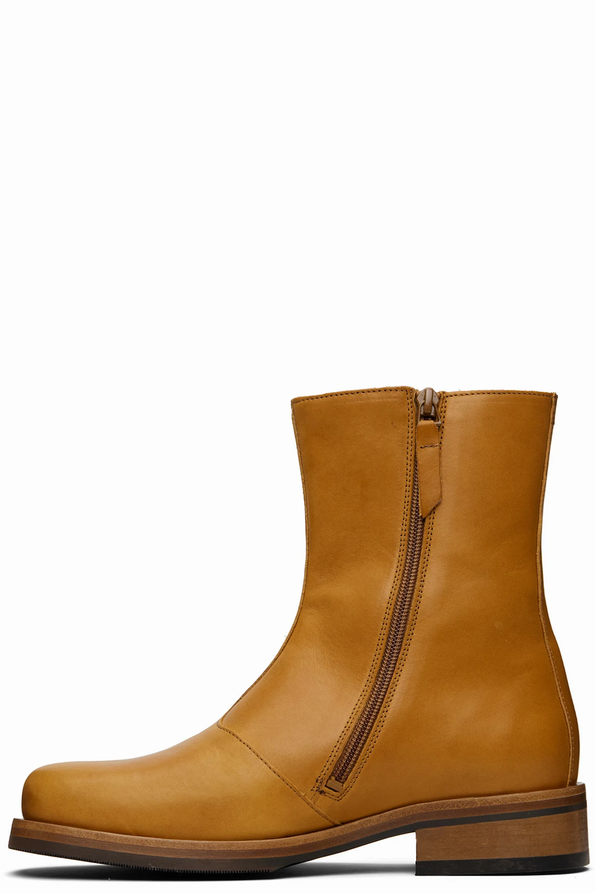Ankle-high vegetable-tanned buffed leather boots.