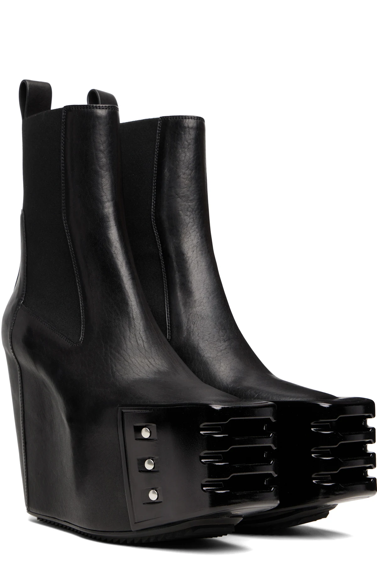 Rick Owens Black Grilled Wedge Beatle Chelsea Boots