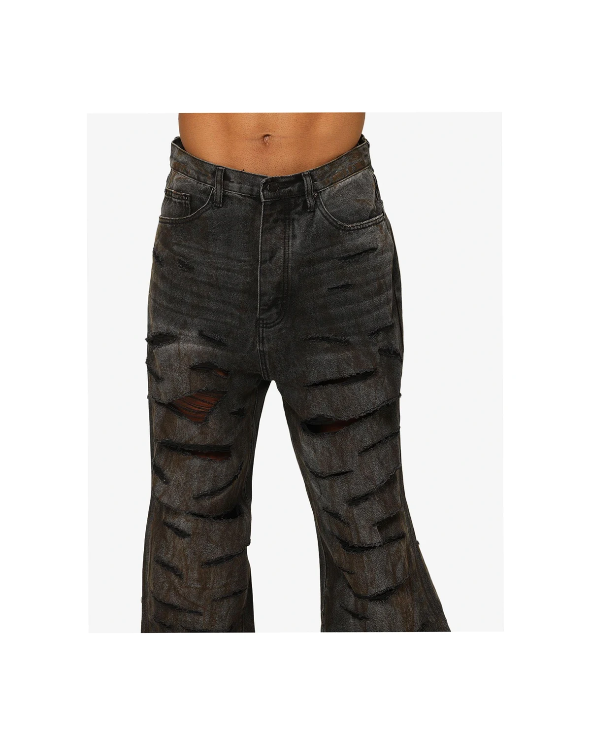 Elevate your fit with the Ultra Baggy Thrashed Denim by mnml. These are designed with an oversized ultra baggy fit, constructed from denim with a vintage wash, extensive distressing throughout, featuring standard five pocket denim details, and finished with a button placket.