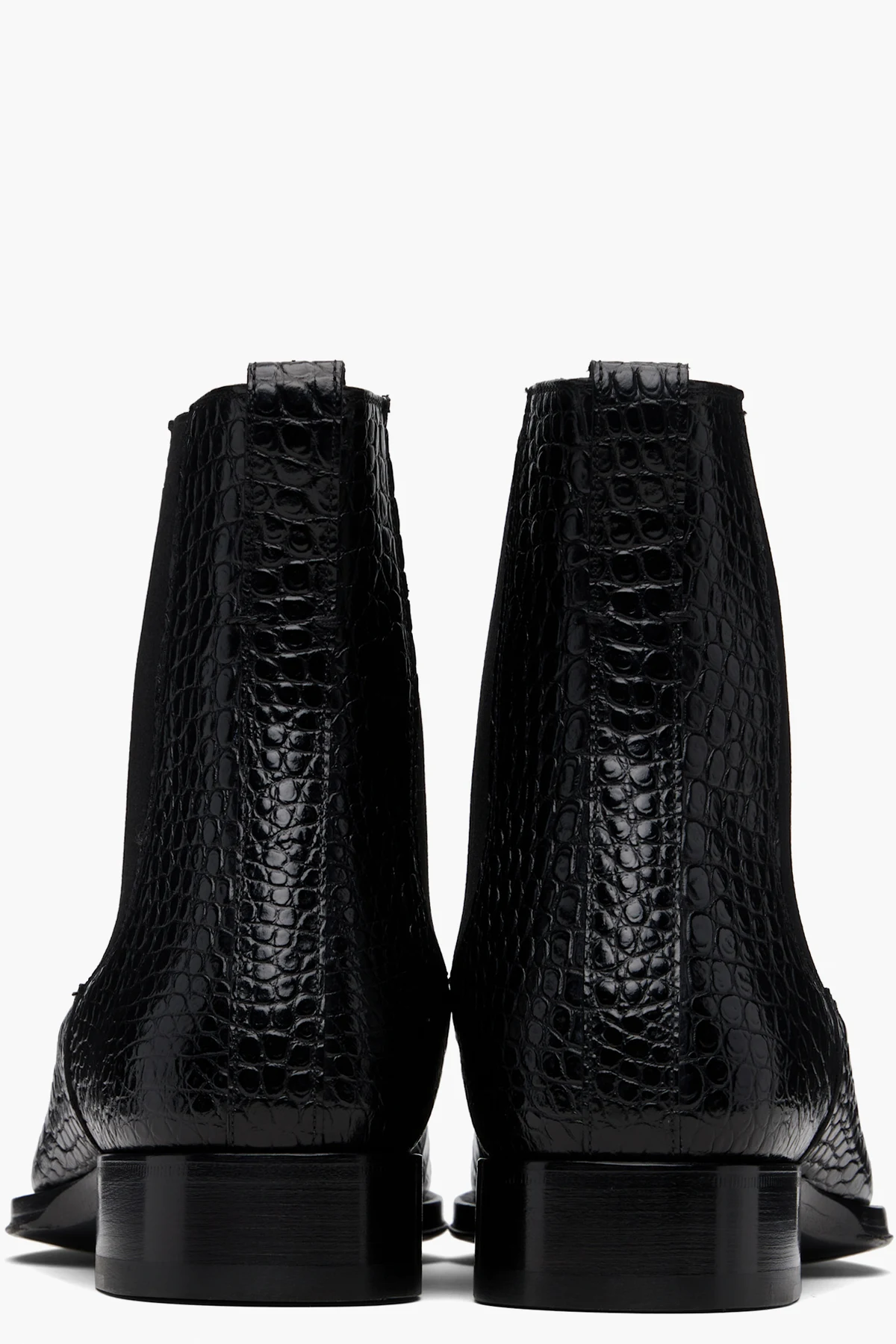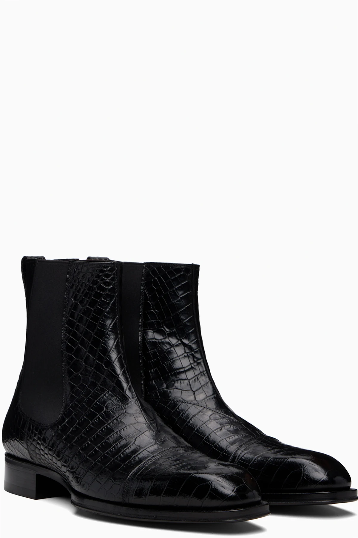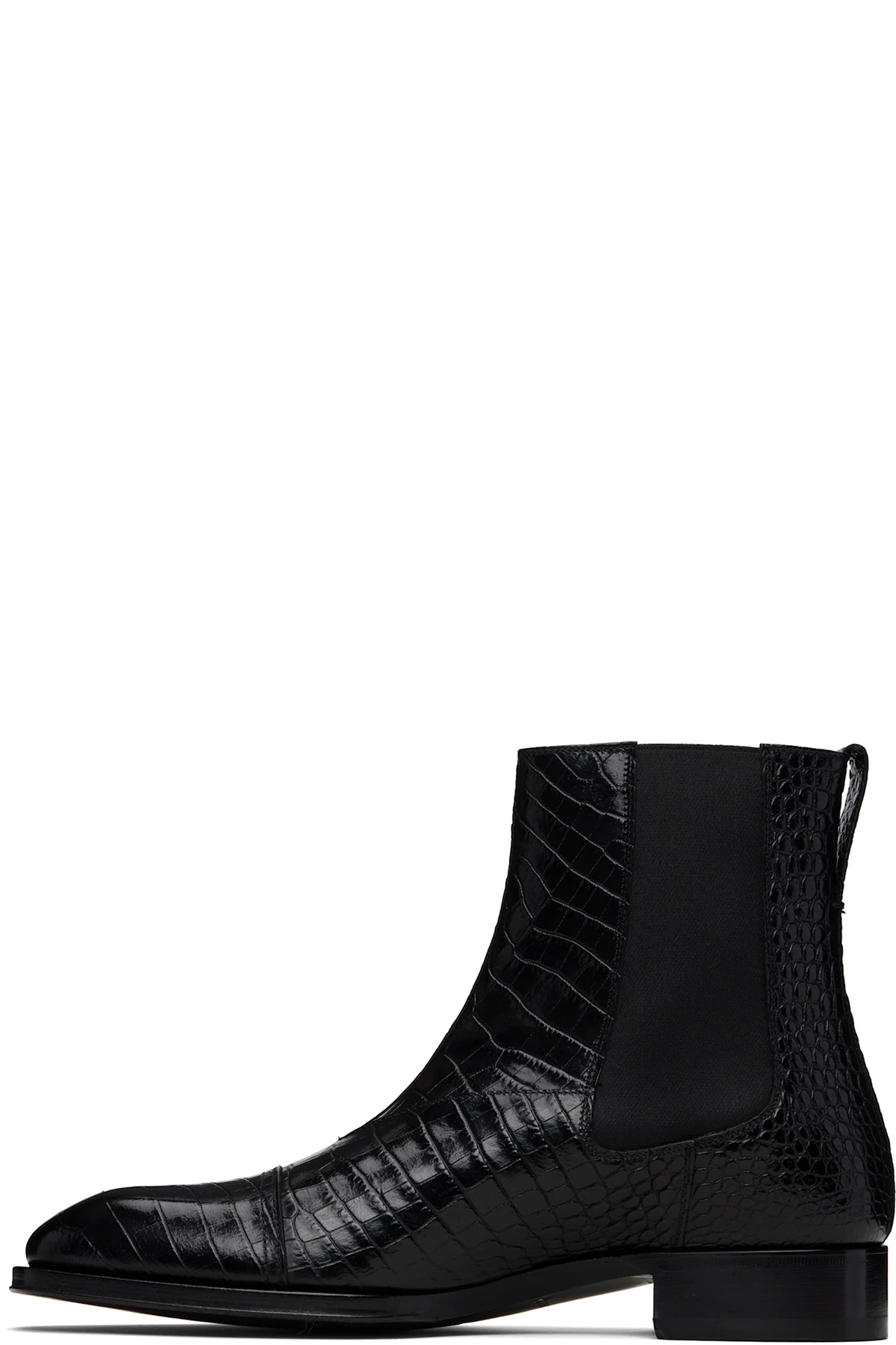 Tom Ford Black Shiny Printed Croc Elkan Chelsea Boots