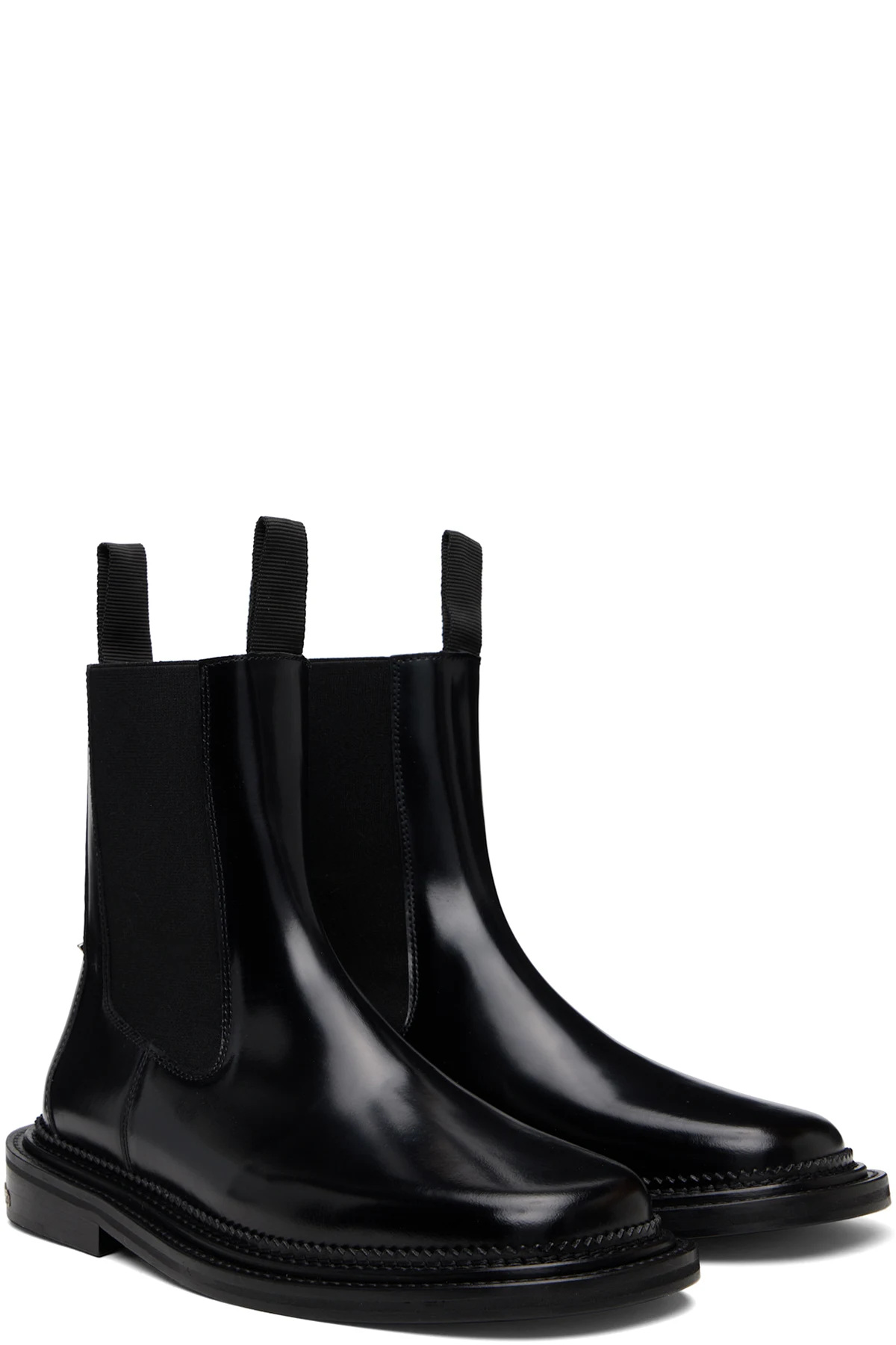 Ankle-high polished leather Chelsea boots.