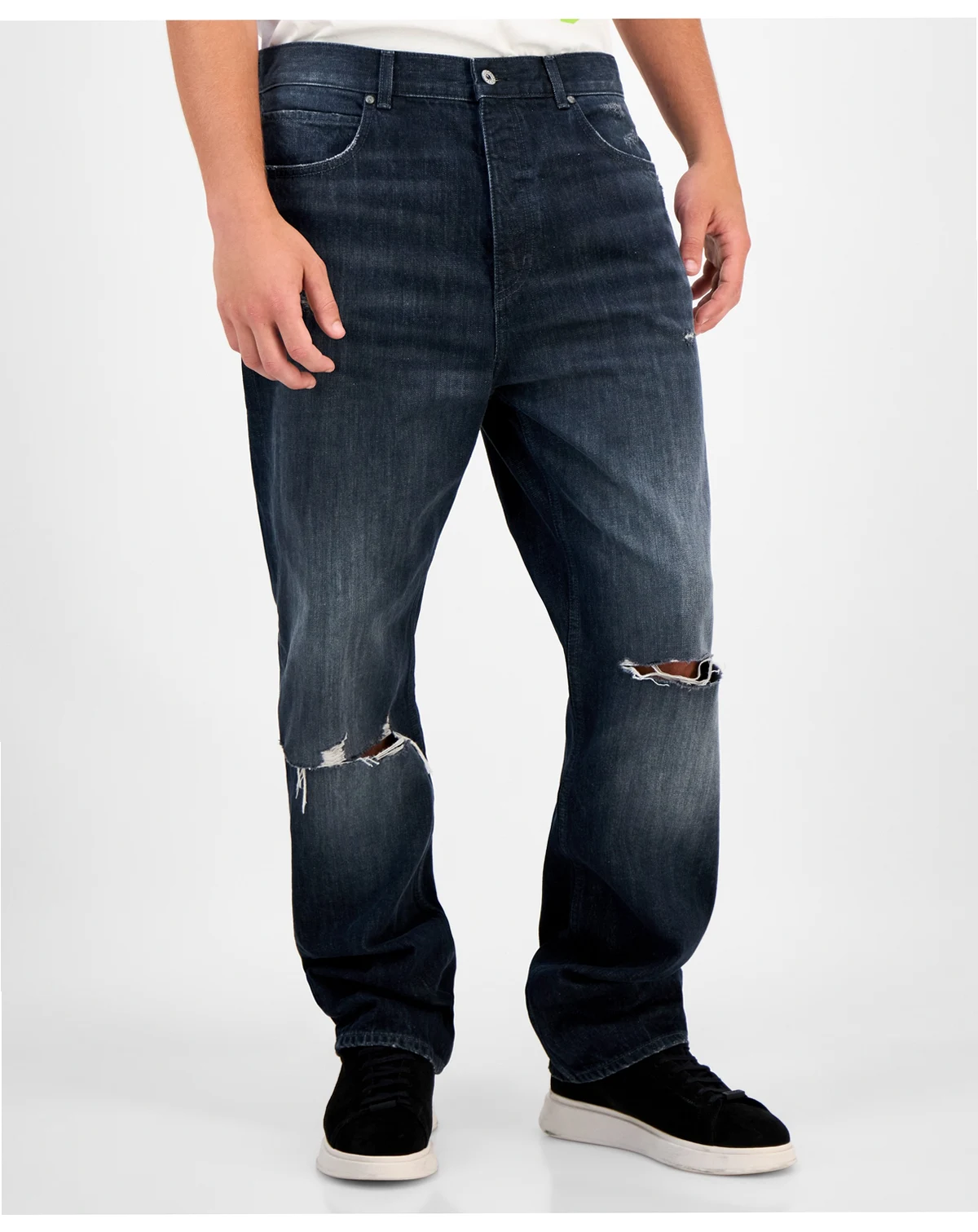 Go for an effortlessly cool, laid-back look with these HUGO By Hugo Boss cotton jeans featuring a relaxed fit and subtle distressed details.