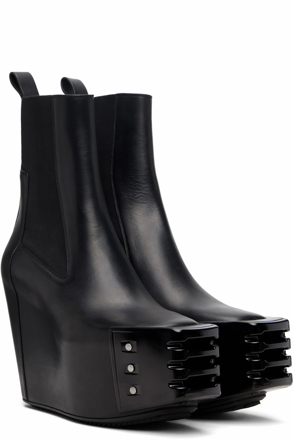 Rick Owens Black Temple Grilled Wedge Beatle Chelsea Boots
