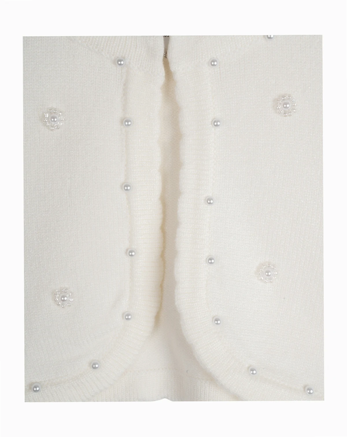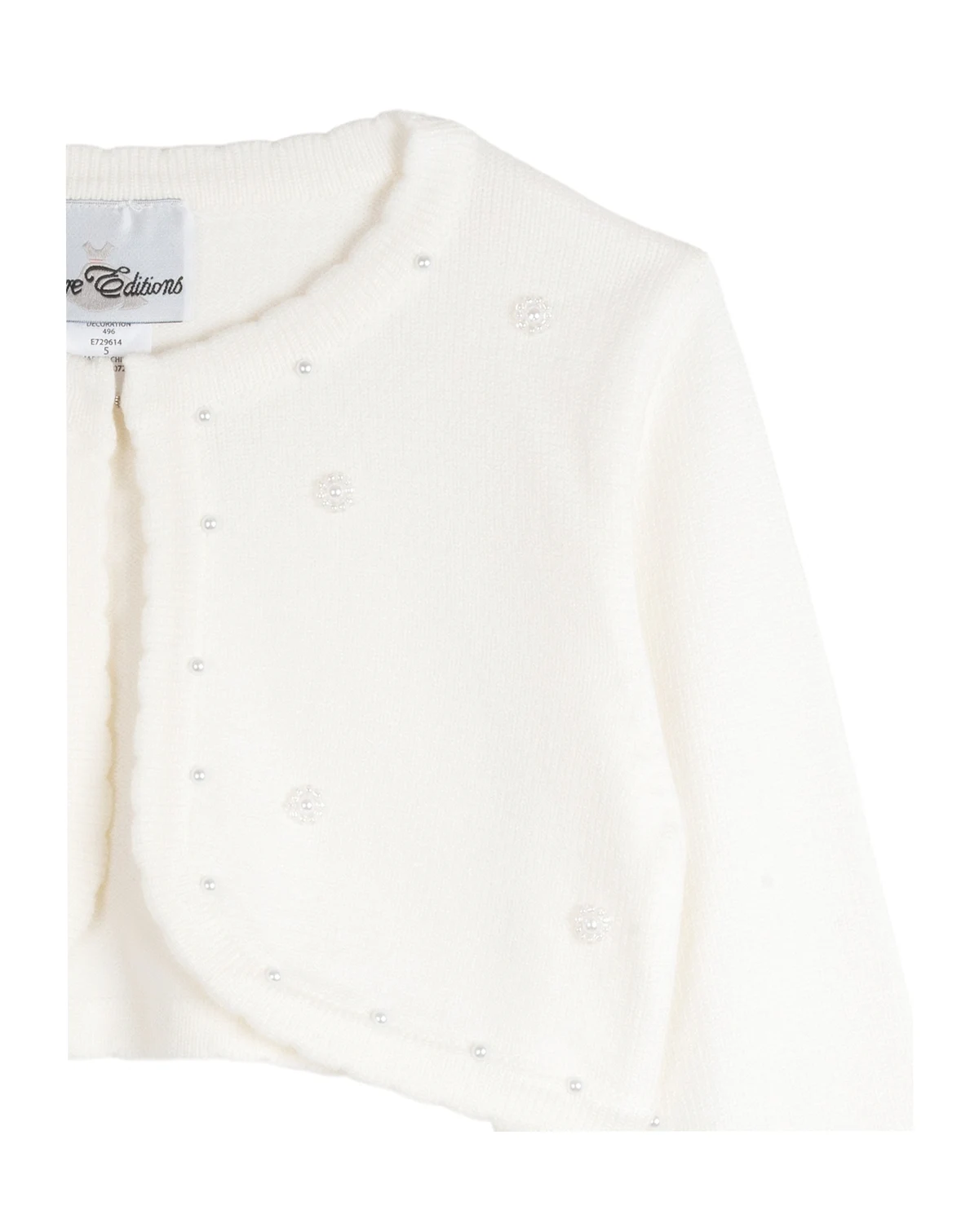 A little girls stretch knit cardigan with imitation pearl and bead detailing.