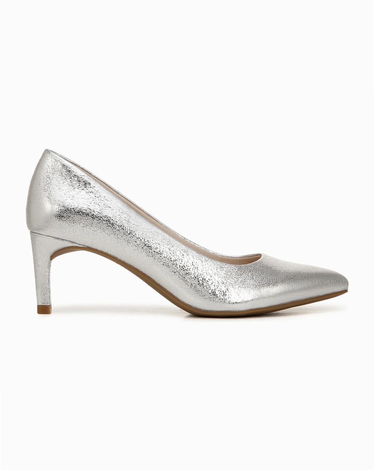 A classic and chic pointed toe pump with all day comfort, ready for whatever your day brings. Faux leather or microfiber upper with slip on fit and softly pointed toe. Soft System® comfort package provides all day support, flex, and cushioning. Traction sole for extra stability.