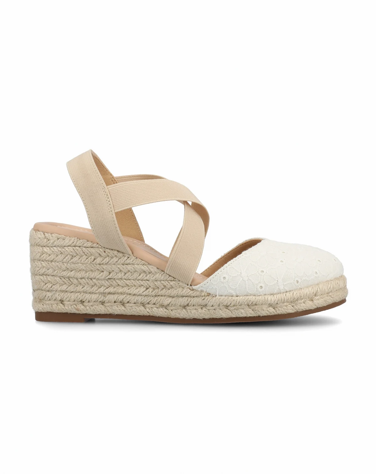 The Ashlee espadrille wedge sandal from Journee is the perfect summer footwear for everyday wear. It features a stylish pull-on design. Crafted from soft fabric, its multi-strap construction not only adds a touch of elegance but also provides a secure fit, while the round-toe shape enhances comfort for all-day wear. Additionally, the cushioned footbed offers exceptional support, making these sandals an ideal choice for those seeking both fashion and functionality during the warm months. Also available in wide width.