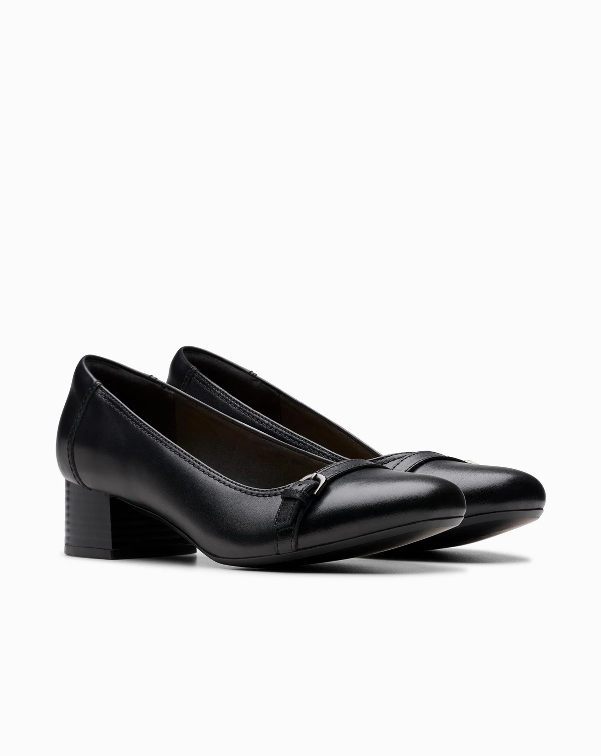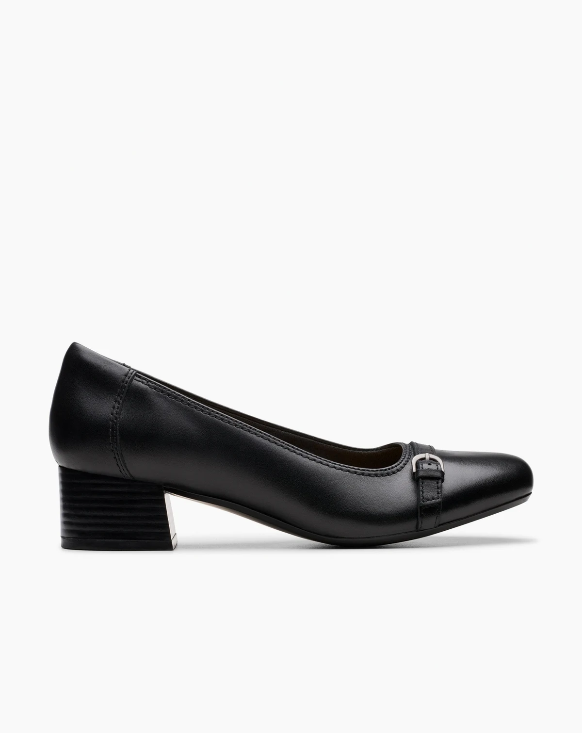 A feminine low-heeled hero packed with comfort; Marilyn Nora adds polish to any outfit. Topped with sleek metal buckle detailing, this leather silhouette sits on top of a sturdy, easy-walk heel that's enhanced with a durable rubber outsole to add grip. Inside, a Polyurethane foam footbed and Cushion Soft padding provide impact-absorption and support. Looks great with trousers or dresses.
