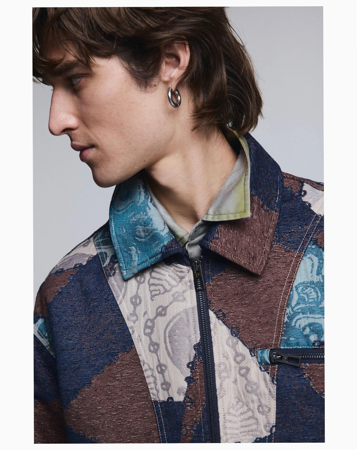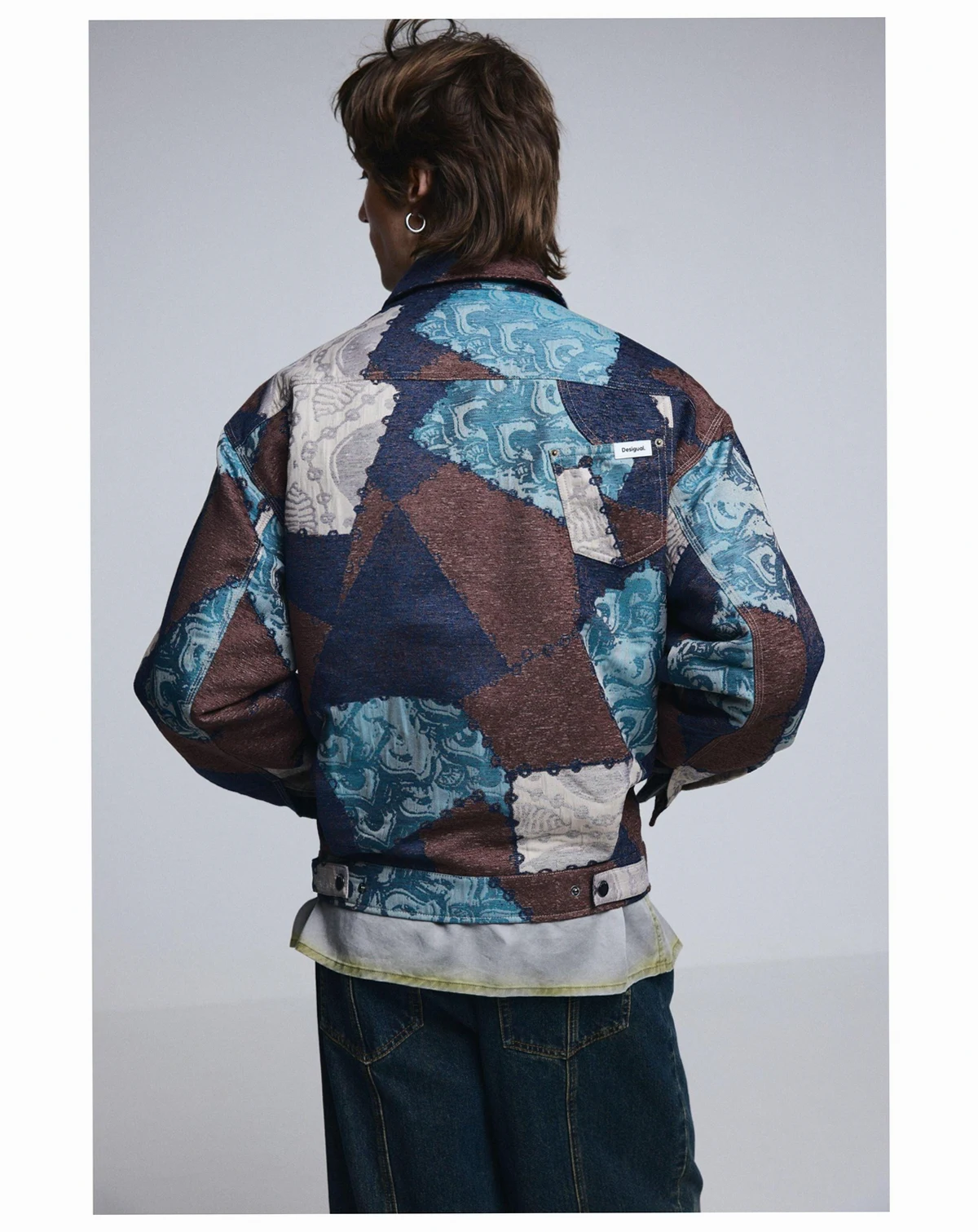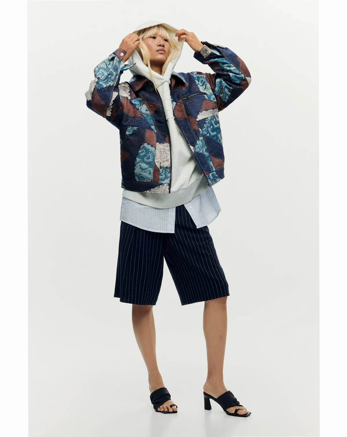 Regular-fit jacket with bomber-style collar and mosaic print in different shades.