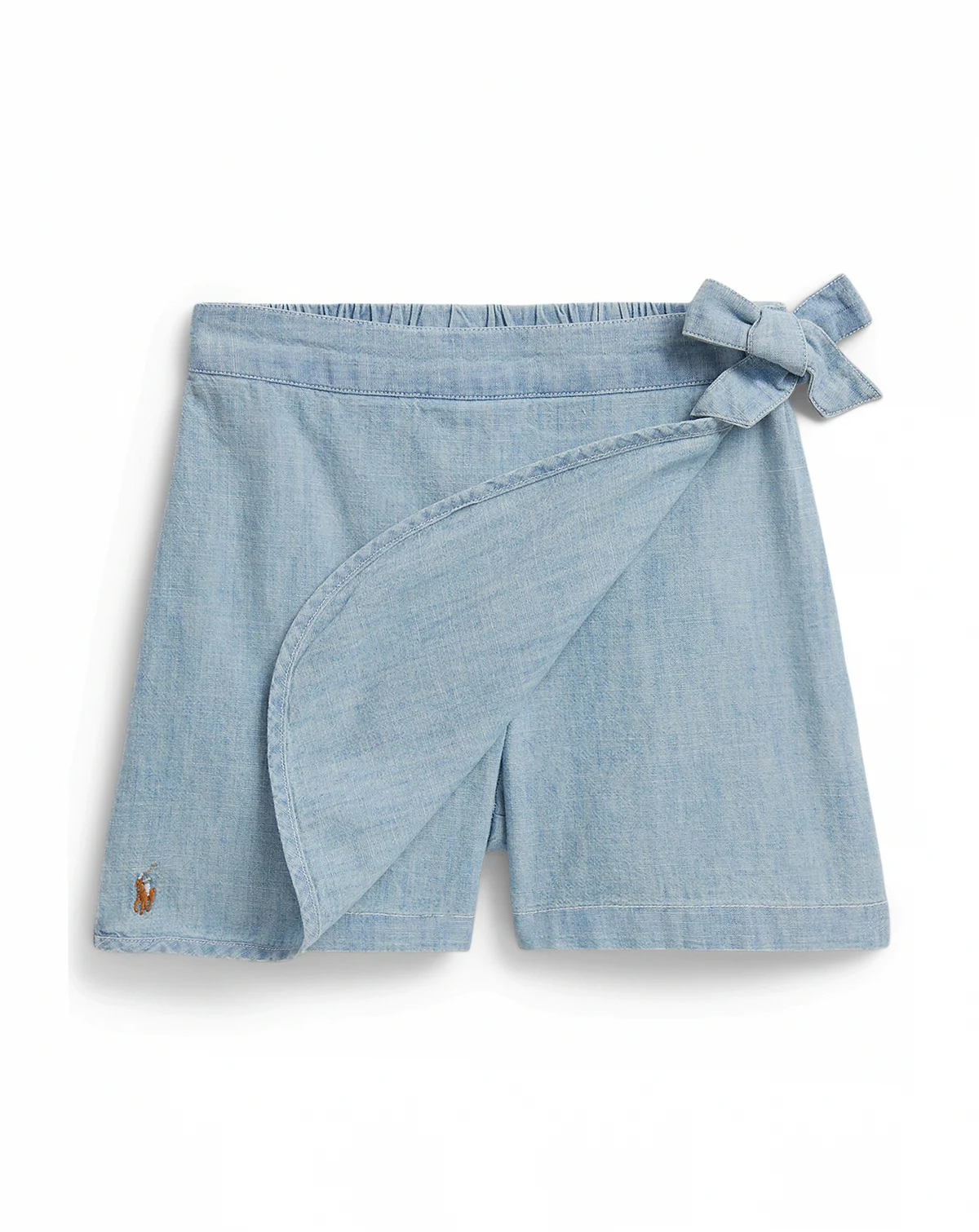 Polo Ralph Lauren Girls' 2T-6X Chambray Faux-Wrap Skort