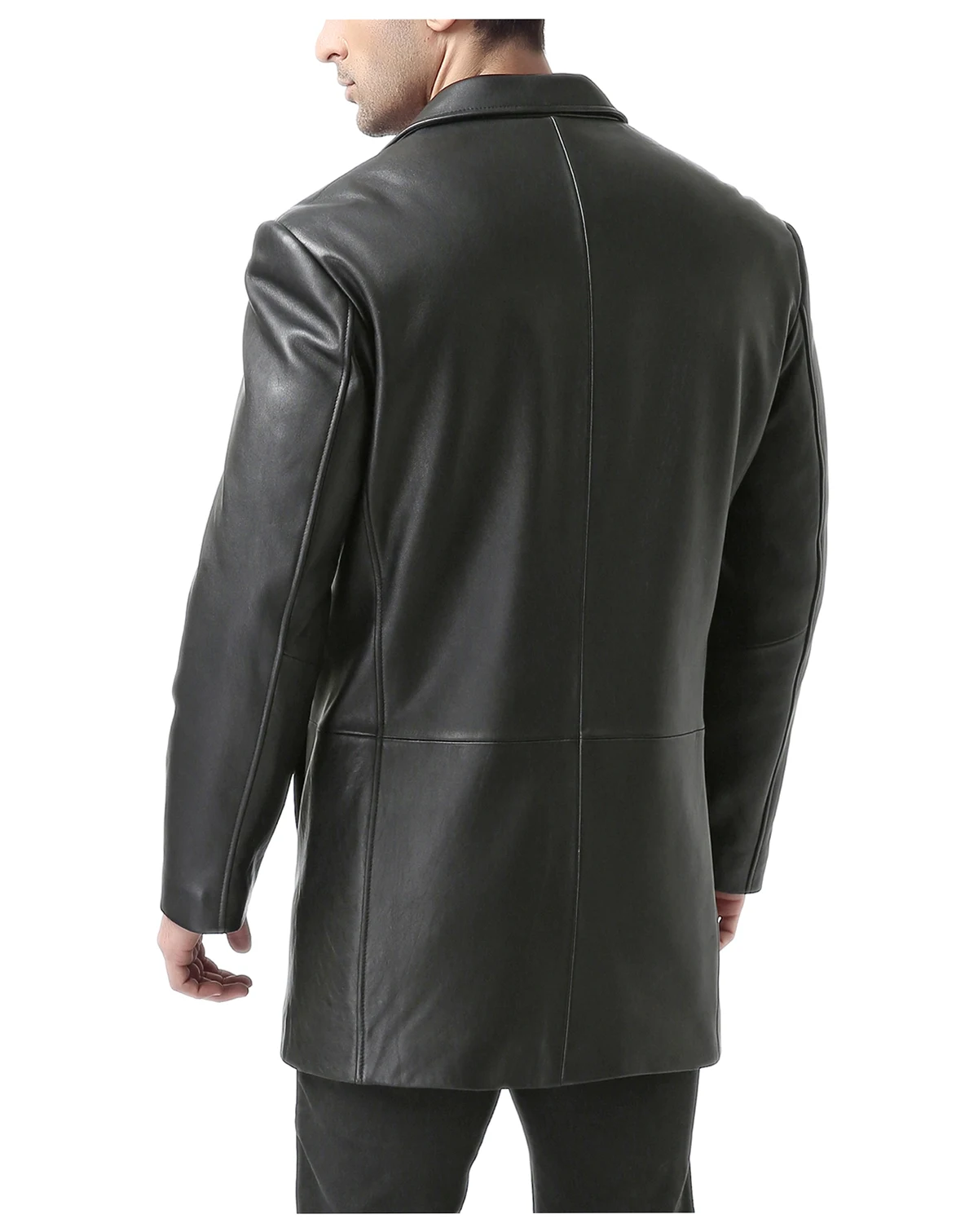 Buttery-soft leather creates a handsomely versatile coat designed with a notched lapel and three-button closure. Quilted polyester lining with polyester fill for extra warmth and comfort.