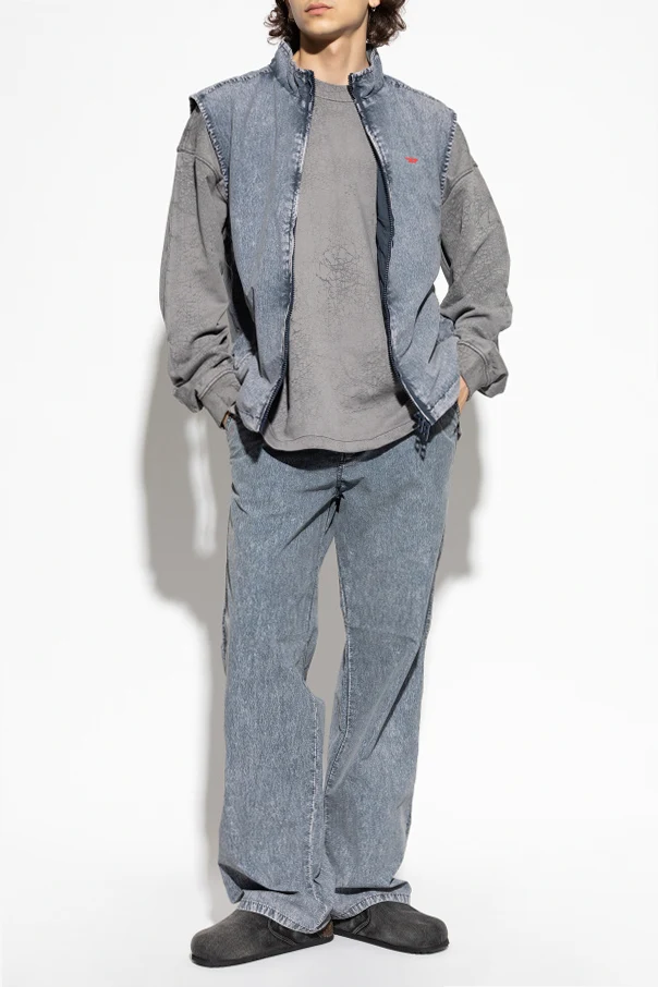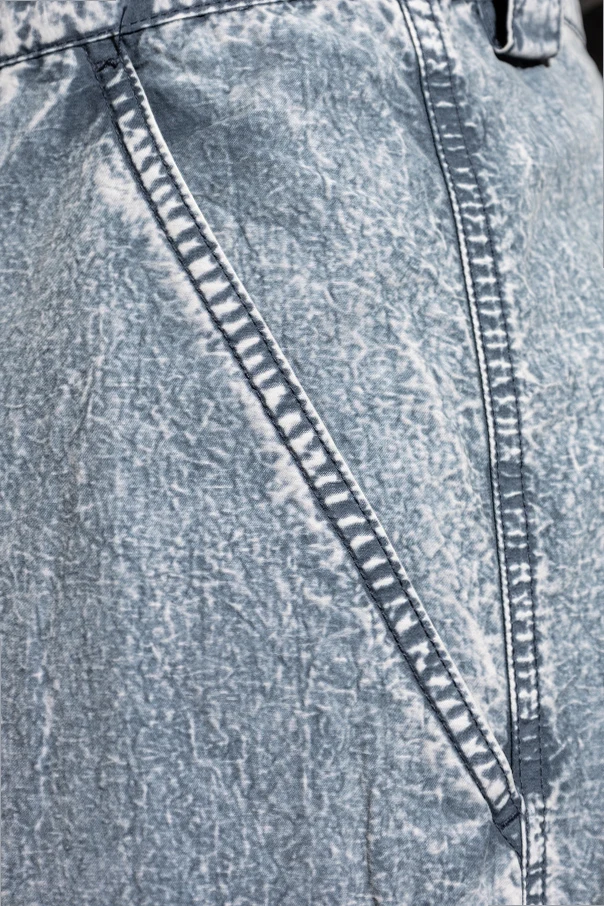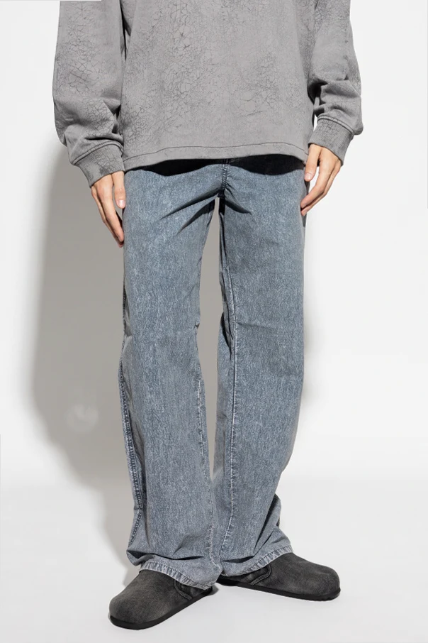 Experience refined sophistication with the P-HANTIK-CHINO trousers by Diesel . Impeccably tailored for an exclusive clientele, these pants showcase a classic straight-leg silhouette with a relaxed fit that grants effortless freedom of movement from waist to ankle. Distinctly crafted from a premium fabric reminiscent of fine denim, the material features an expressive acid-wash effect enhanced by prominent contrast stitching, offering a strikingly modern yet timeless appeal.