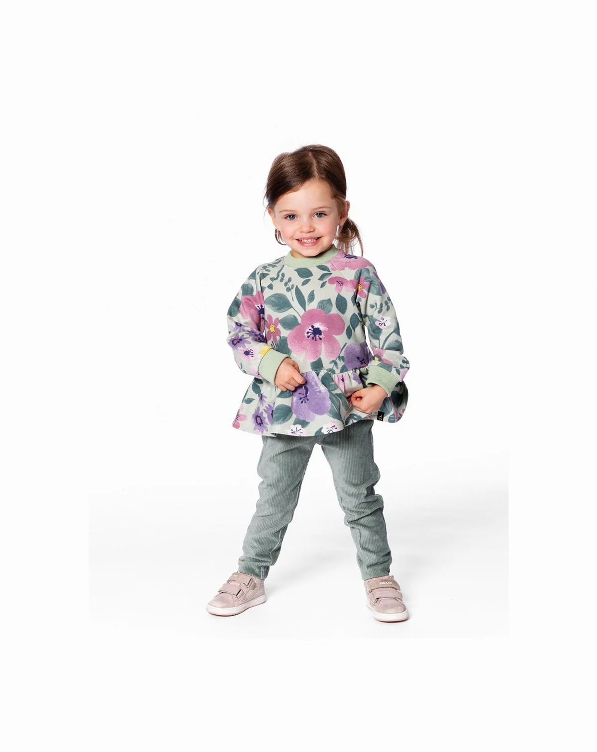 The Stretch Velour Tregging Jade Green is a stylish and comfy pick for your little fashionista. Crafted from a soft stretch rib velour blend of cotton, polyester, and elastane, these pants offer the perfect balance of comfort and flexibility for all-day wear. Featuring a solid jade green color, two front pockets and a stretch fit, these pants are ideal for pairing with any top from our "Frost Flowers" collection for a cozy yet fashionable look.