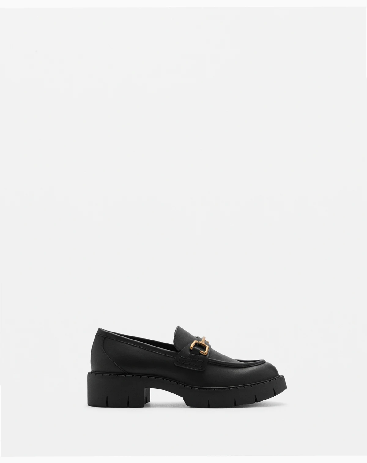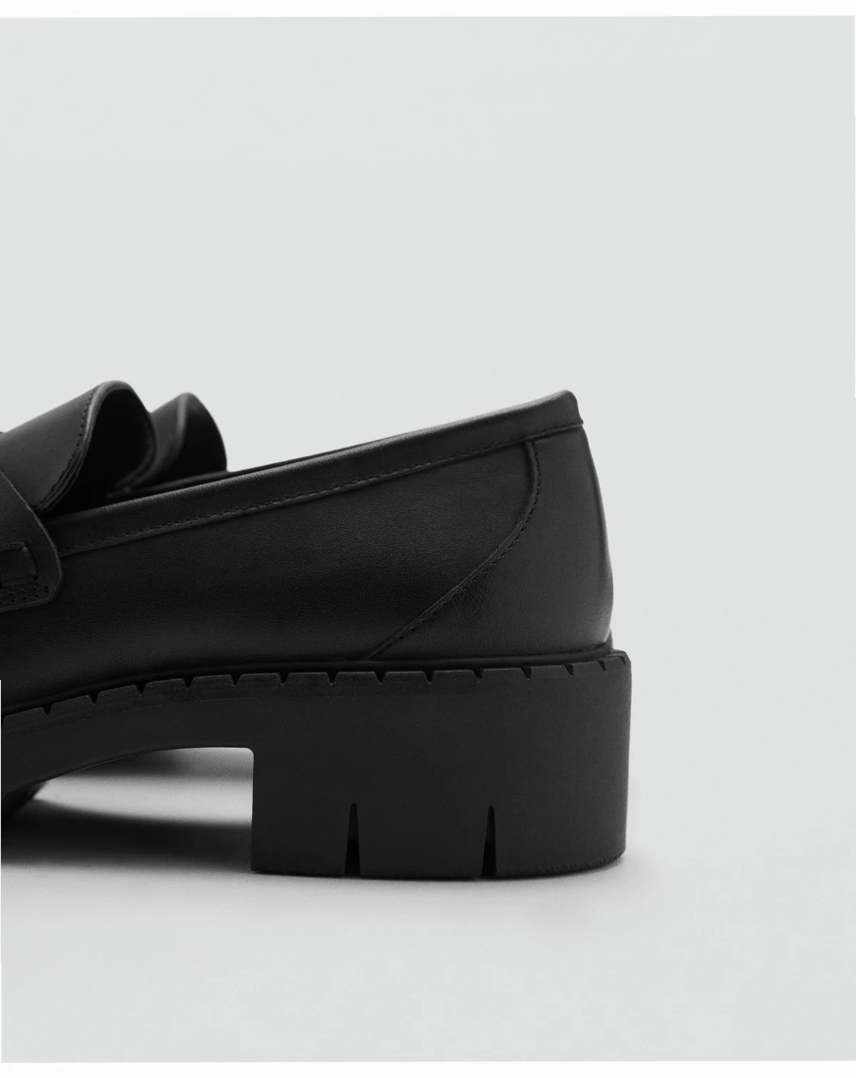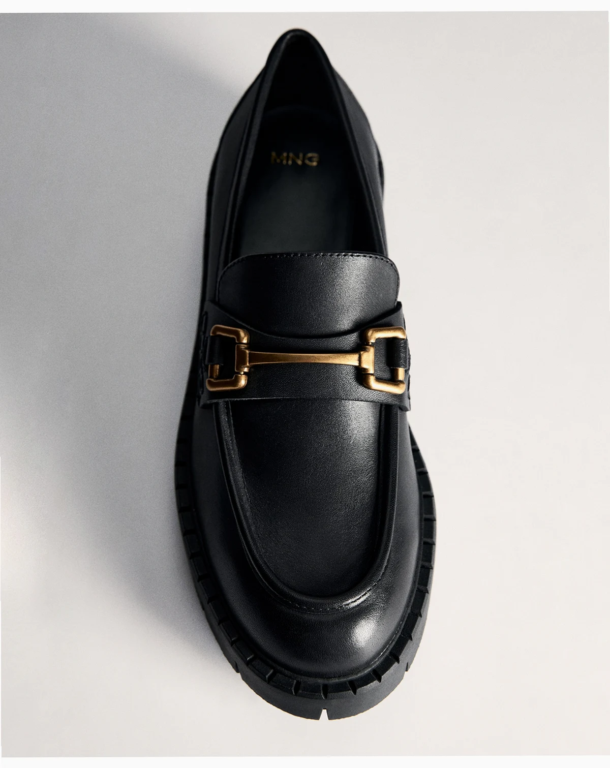 Step into comfort and style with these leather moccasins by Mango. The flat design and rounded toe ensure all-day wearability, while the metallic detail adds a touch of elegance. Crafted from bovine leather and zinc, these slip-ons effortlessly blend classic charm with modern flair.