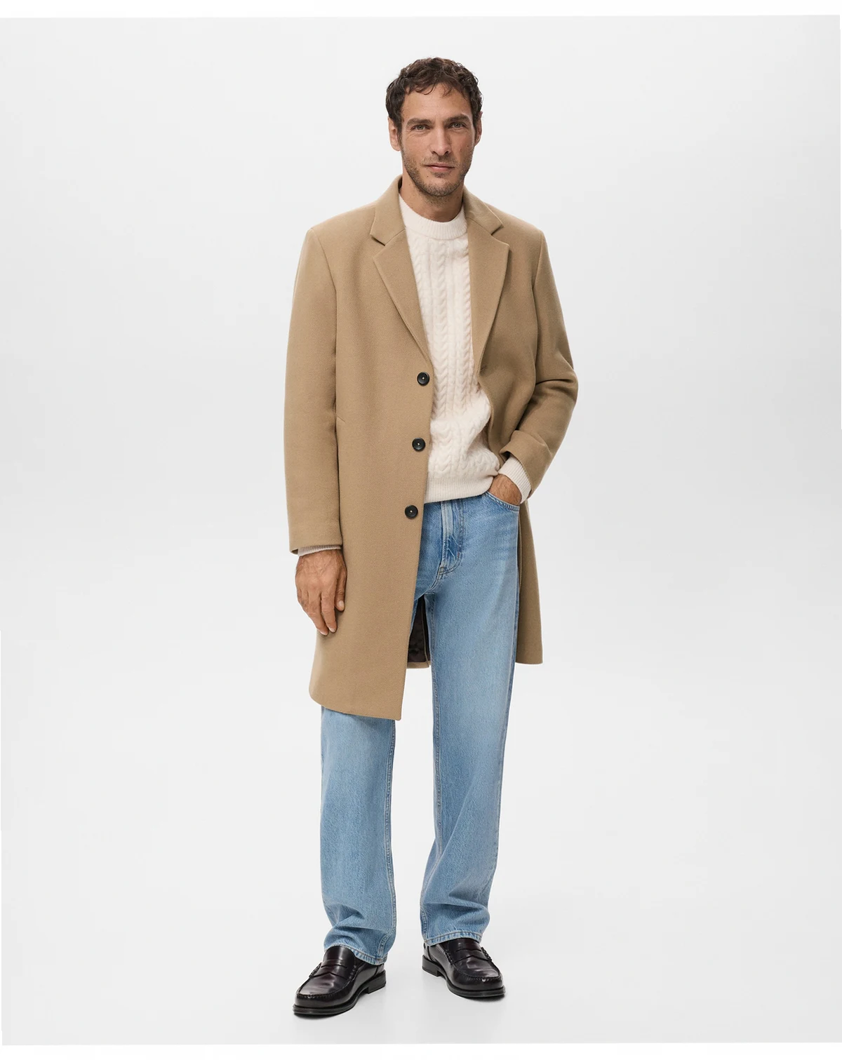 Elevate outerwear classics with the Manteco Wool Coat with Lapels from Mango. Made from Italian Manteco wool fabric, the coat features regular fit, notched lapels, buttoned front closure, side welt pockets, interior pocket, lining and back-slit hem.