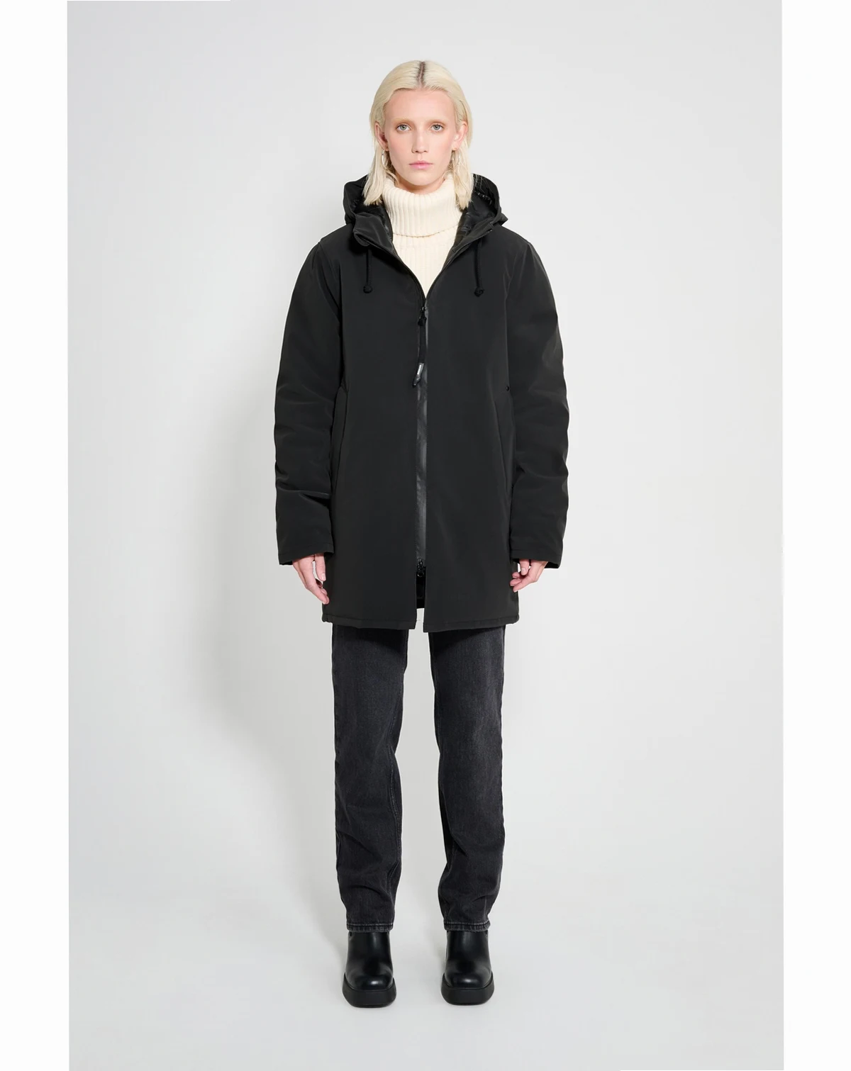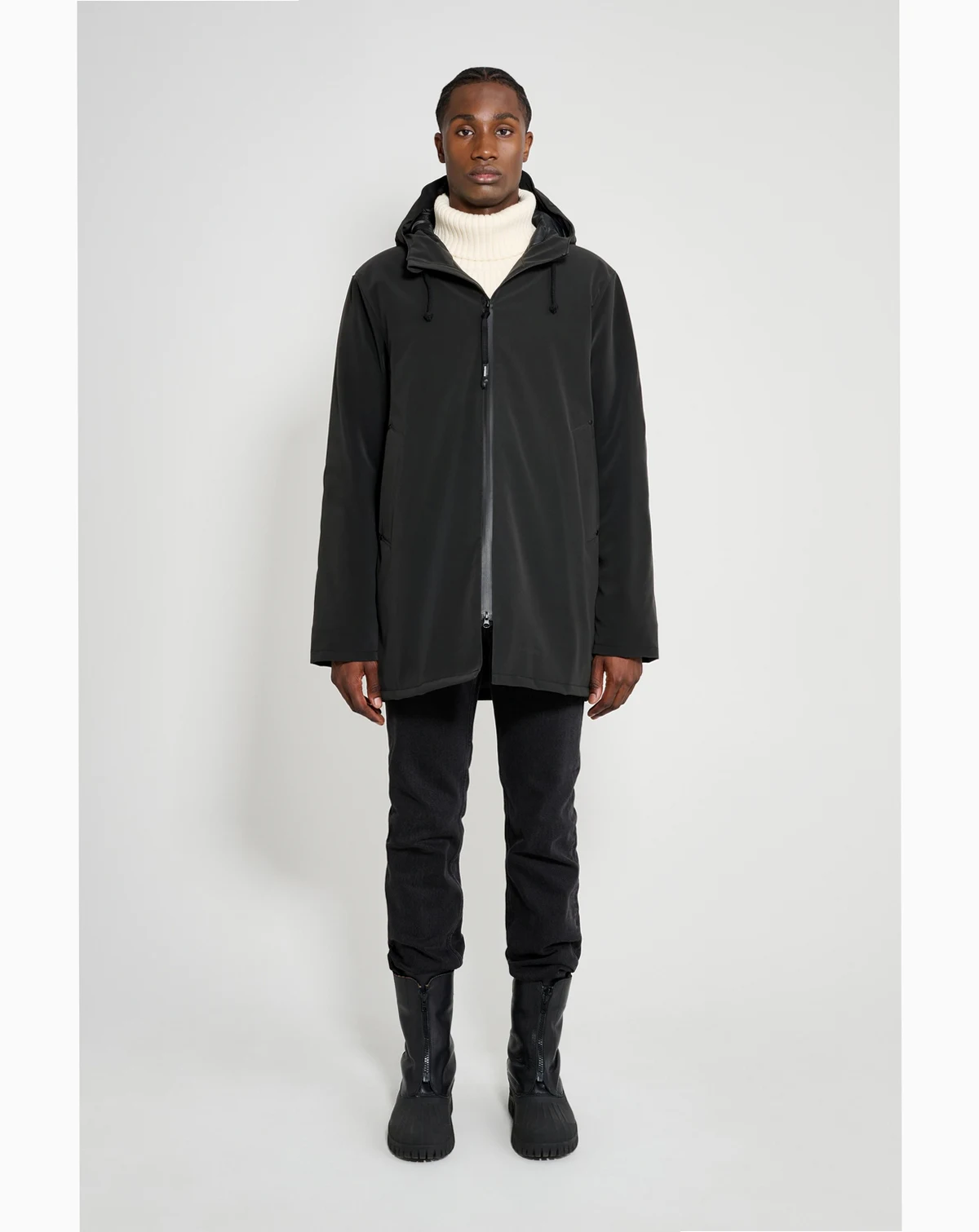 Stockholm Winter Matte is a straight-fit warm raincoat in sturdy and hard-wearing waterproof fabric with a matte-textured finish. It s insulated with padding for warmth during the winter season. Expertly made, it s tailored with double-welded seams for complete protection against rain and snow. The drawstring hood and knitted wristlets add ease of movement and comfort in uncomfortable weather.
