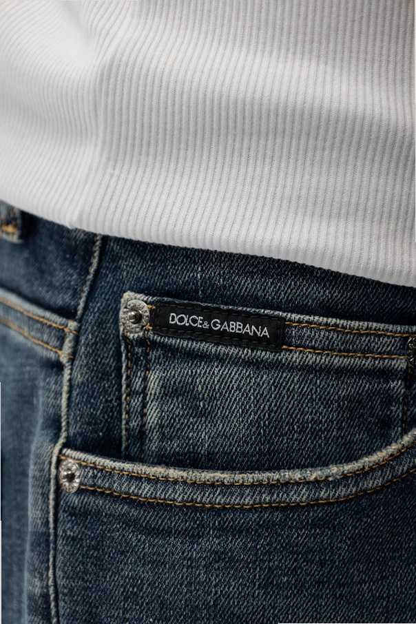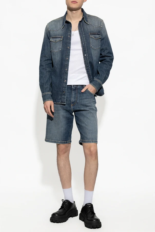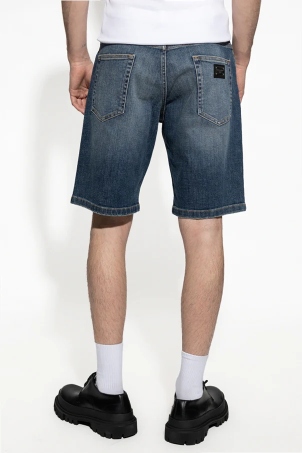Dark blue denim shorts from Dolce & Gabbana. Crafted from stretch cotton, this pair features a zip fly with a button, classic five pockets and a back logo patch.