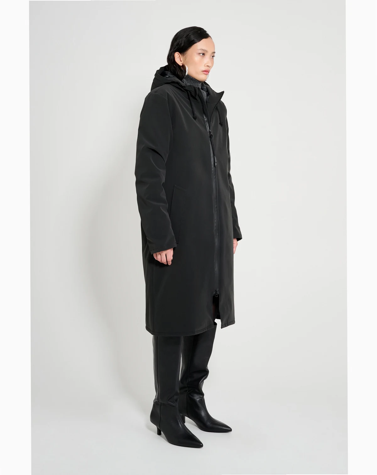 Stockholm Long Winter Matte is a straight-fit knee-length warm raincoat in sturdy and hard-wearing waterproof fabric with a matte-textured finish. It s insulated with padding for warmth during the winter season. Expertly made, it s tailored with double-welded seams for complete protection against rain and snow. The drawstring hood and knitted wristlets add ease of movement and comfort in uncomfortable weather.