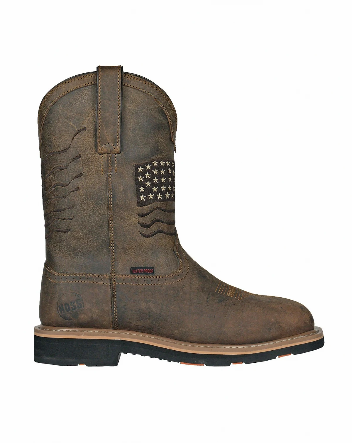Built for workers who want classic Western style with dependable jobsite performance, the HOSS Rushmore Soft Toe Puncture Resistant Work Boot delivers comfort and protection in a pull-on design. This Western work boot features a soft toe certified to ASTM F2892-18 EH, providing electrical hazard protection without the weight of a safety toe. The full-grain cow rancher leather vamp and durable leather shaft offer long-lasting wear with a traditional Western look. Pull handles allow easy on and off, while a waterproof membrane and moisture-wicking lining help keep feet dry. Underfoot, a PU memory foam insole, EVA midsole, Goodyear welt construction, slip-resistant rubber outsole, and puncture-resistant plate deliver cushioning, stability, and reliable traction for demanding work environments.