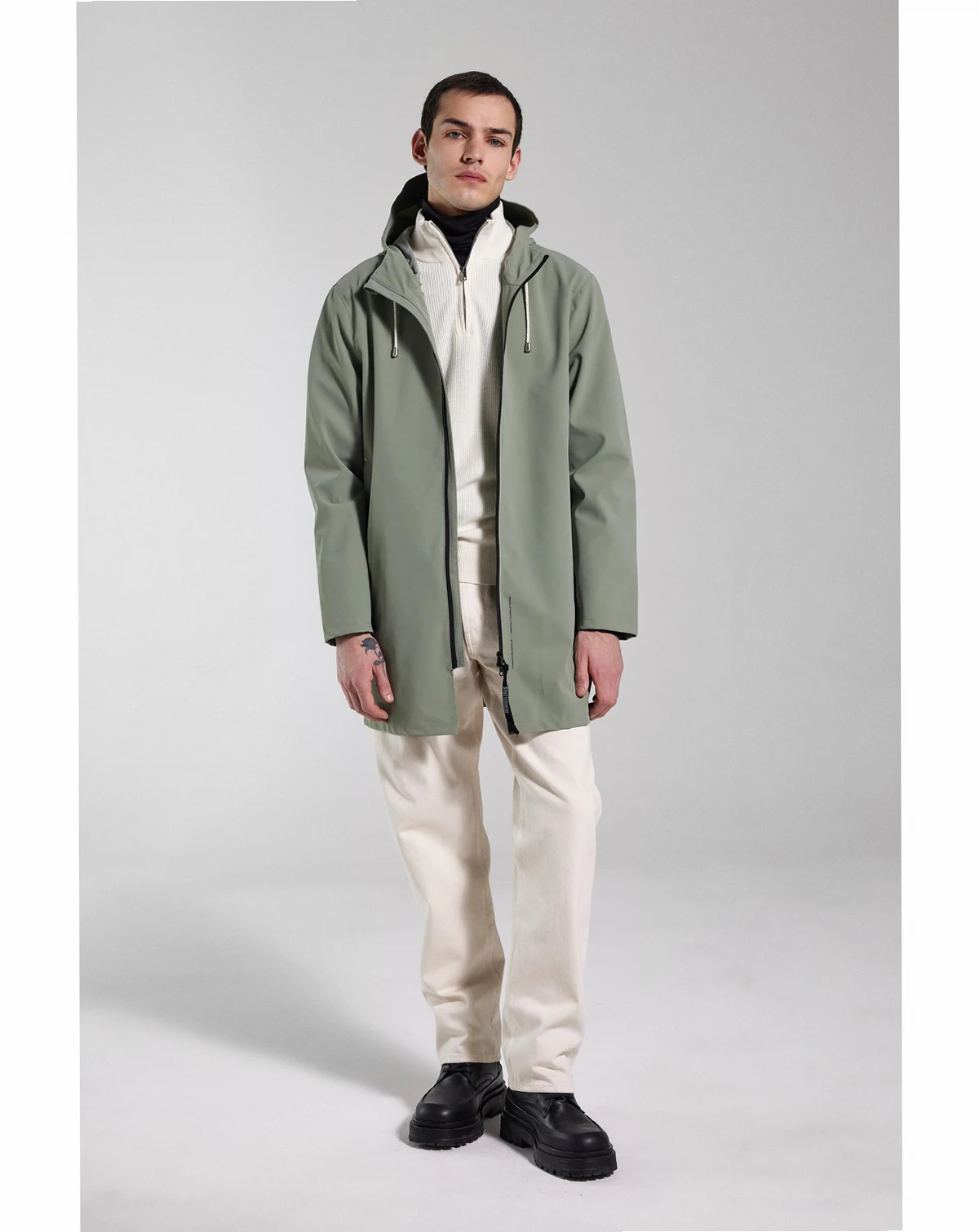 Stockholm Lightweight Zip is a straight-fit raincoat in ultra-light waterproof fabric. Expertly made, it s tailored with double-welded seams and equipped with an aqua guard zipper for complete protection against the rain. The drawstring hood and under-arm eyelets add ease of movement and comfort in uncomfortable weather. The thin and packable fabric makes this garment perfect when on the go.