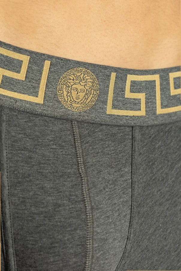 Adorned with a signature golden Grecian meander pattern at the waistband, each piece is enhanced by the iconic Medusa emblem , signifying its prestigious Versace lineage. The briefs' classic, tailored cut gracefully accentuates the physique, making them the ideal choice for both everyday elegance and special occasions.