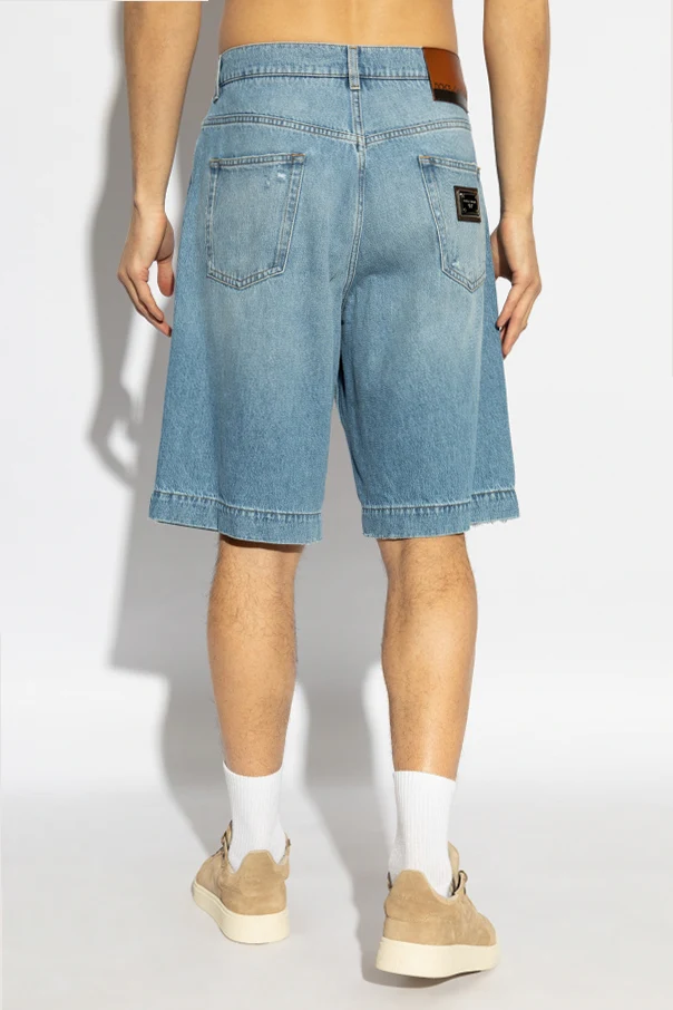 Adorned with subtle distressed effects, these shorts boast a modern, slightly rugged aesthetic. The presence of a discreet "Dolce & Gabbana" logo tag on one of the five pockets affirms the exclusivity and prestige of the brand, renowned for redefining elegance with their opulent designs.