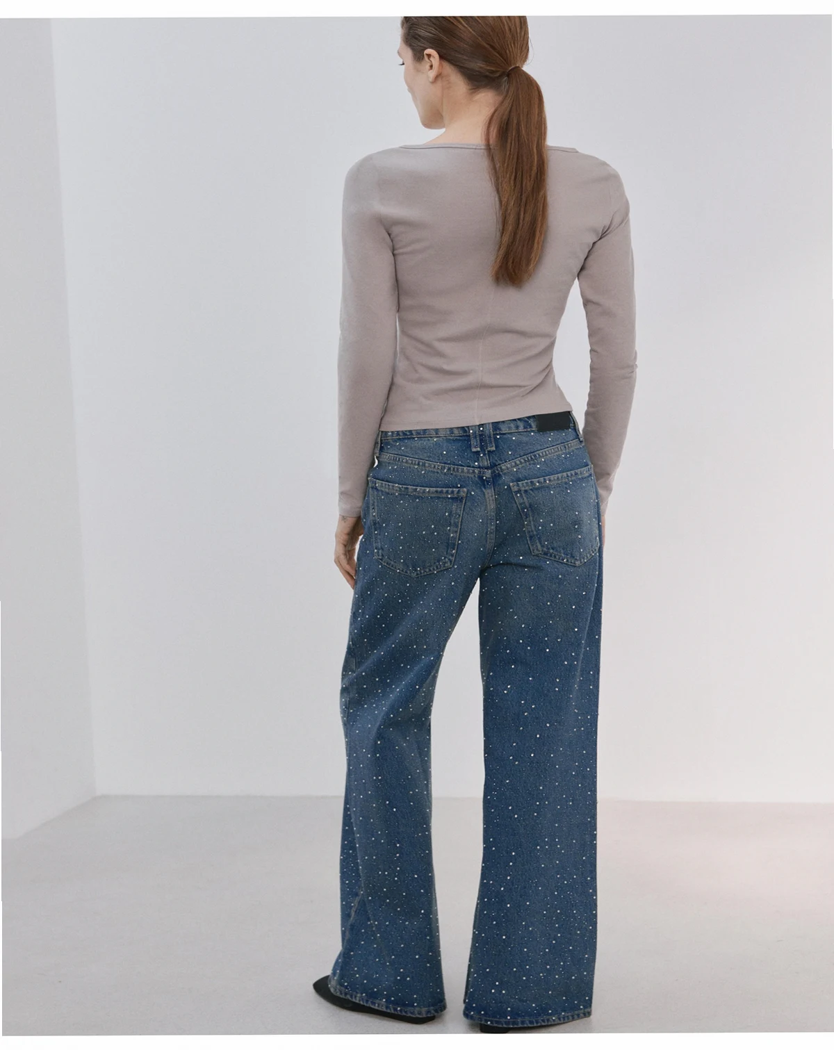 Stride with bold flair in Wide Leg Jeans With Rhinestones from Mango. Made from denim-style cotton fabric, the jeans feature wide-leg cut, mid-rise, five pockets, belt loops, button and zip fastening, and rhinestone detailing. With a history spanning four decades, Mango is one of Europe's leading fashion brands. From Barcelona, on the banks of the Mediterranean, they delight the world with their fashion proposal and lifestyle. Mango's creative team works every day to translate fashion trends into their own language, which they deliver to customers in a personalized way while paying attention to detail.