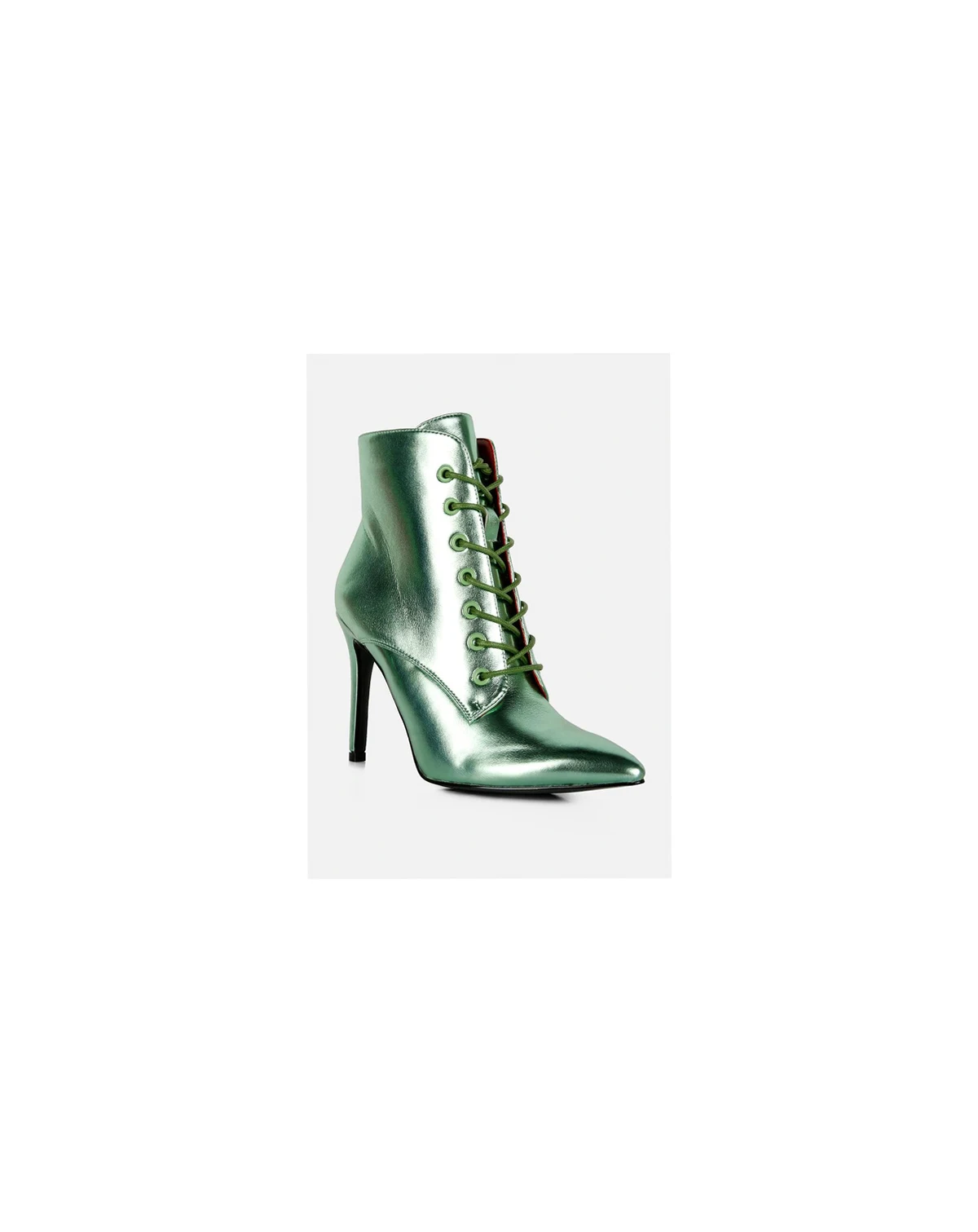 The fancy heels are vibrant and shiny with the metallic effect, constructed in sharp designs. The lace up boots are nothing less than ravishing with the pointed toe. These are perfect for as after party shoes and night outs! Type: Boot Heel Type: Stiletto Close Pointed Toe Upper Material: Metallic Leatherette Lining: Soft Leatherette Outsole: Rubber Side Zipper Detail Lace Up Detail Elasticated Gusset Lightly Padded Insole Party Wear Dress Boots RCSH3449