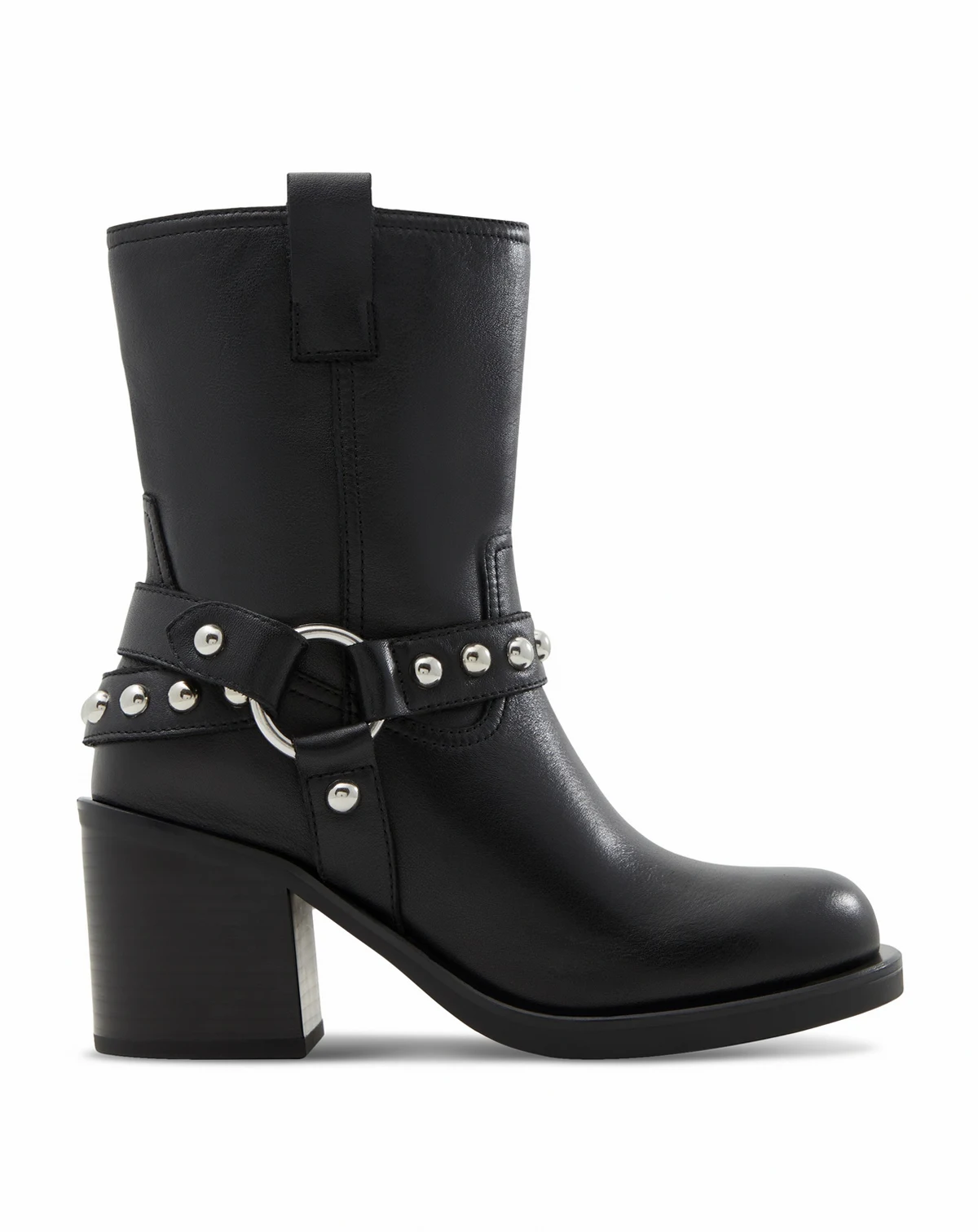 These moto-inspired booties by ALDO slip on with ease and add instant to your look with studded buckles.