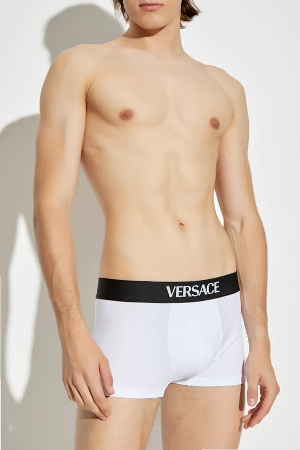 Featuring a bold, contrasting black waistband emblazoned with the iconic VERSACE logo in a pristine white font, these boxer briefs merge classic Italian craftsmanship with contemporary finesse. This exclusive trio arrives in signature packaging, reflecting the house's celebrated heritage of innovation and excellence.