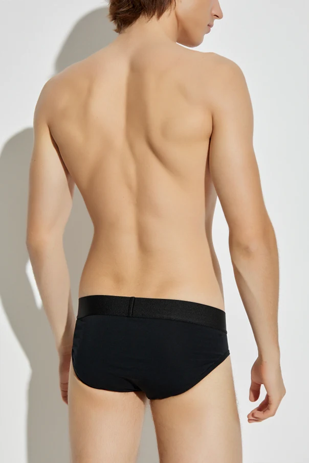 Experience refined comfort with these classic men's briefs from Versace , exquisitely crafted for the modern connoisseur. The design features a sleek, solid silhouette, carefully tailored in high-quality, stretch cotton that ensures exceptional softness, breathability, and resilience. A signature wide, elastic waistband boldly showcases the VERSACE logo in white, serving as an unmistakable statement of luxury and sophistication.