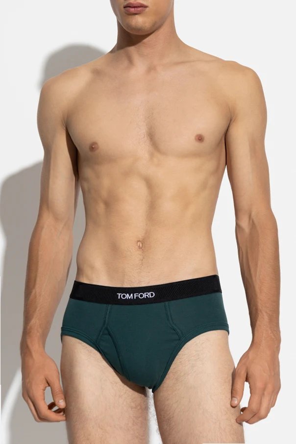 Experience refined sophistication with these green swim briefs from the exclusive Tom Ford collection. Crafted in a sleek, sport-inspired silhouette, these classic briefs are expertly tailored with anatomical seams that gently contour to the masculine form, ensuring an impeccable fit. The premium, elastic fabric offers exceptional comfort and breathability, maintaining its luxurious feel against the skin.