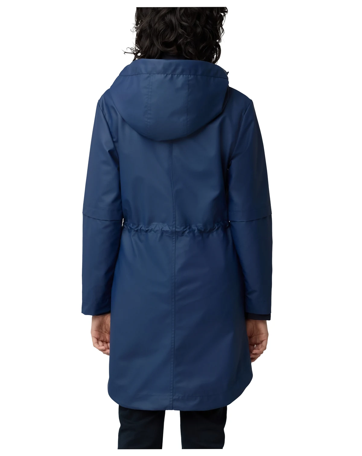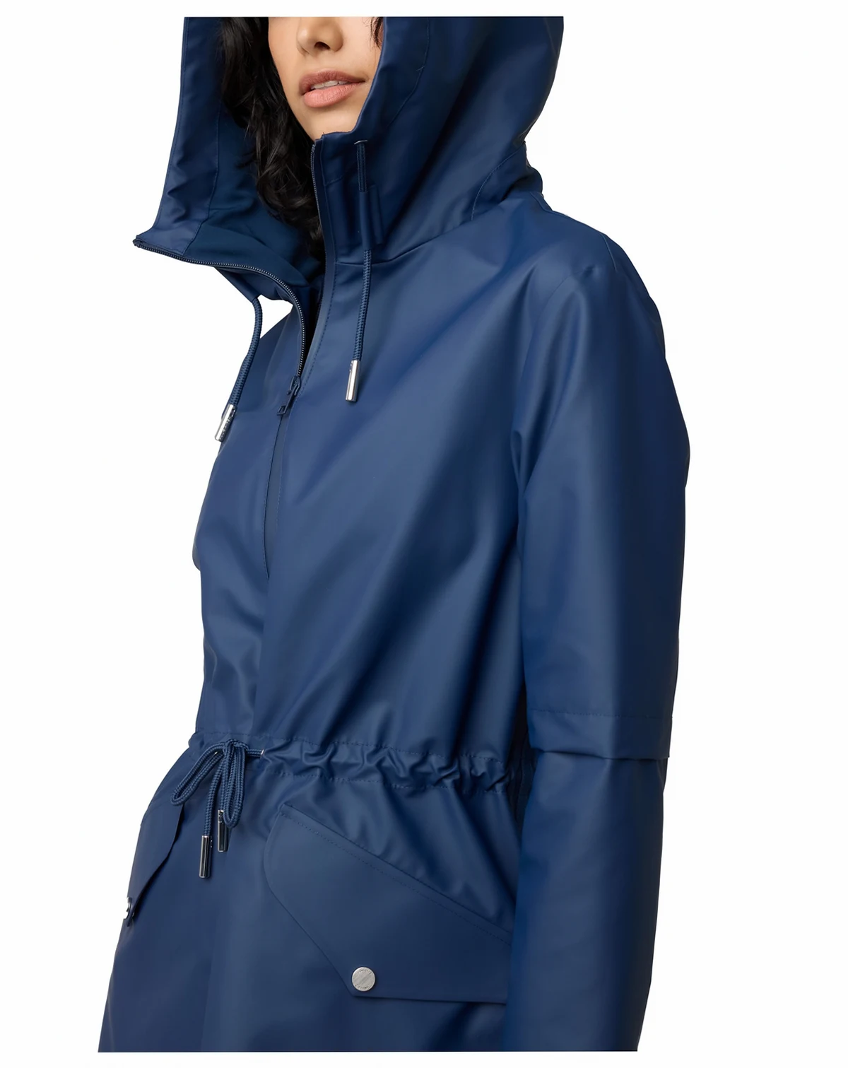 Brave the rain and look good doing it. The SOPHIE by SOIA and KYO is a flattering hooded raincoat with waterproofing and flat felled stitching. Hitting just above the knees, it s the right length to keep your core and legs dry. Adjust your fit using the drawcord at waist.